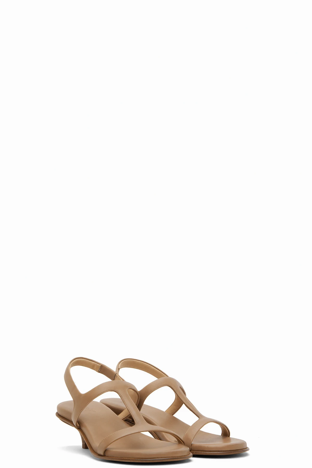 Grained calfskin heeled sandals in tan.