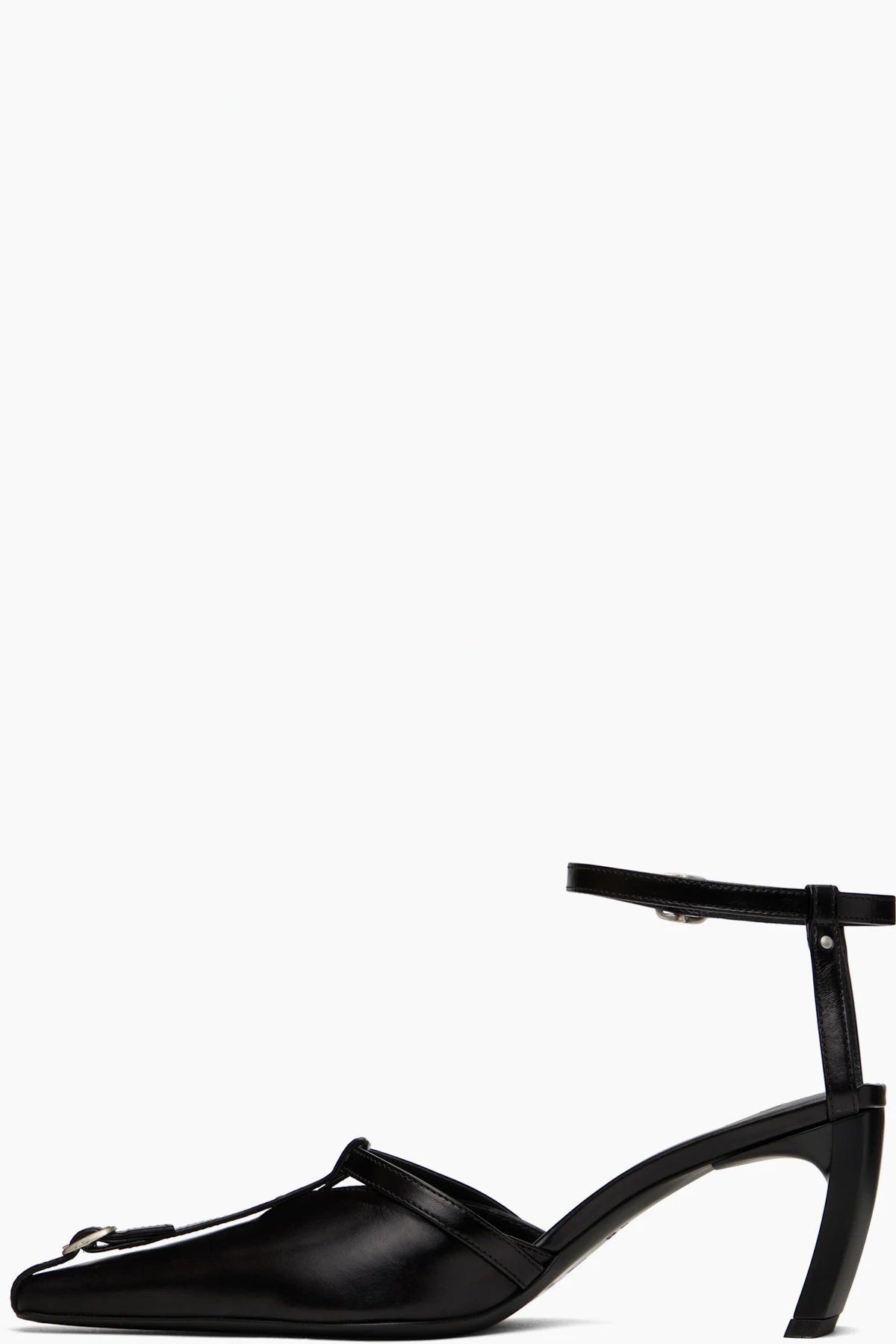 · Pin-buckle strap, rivet, and cutouts at vamp