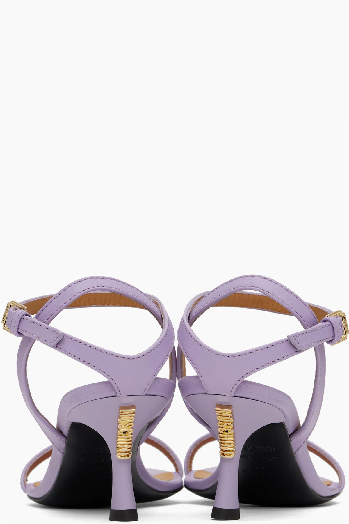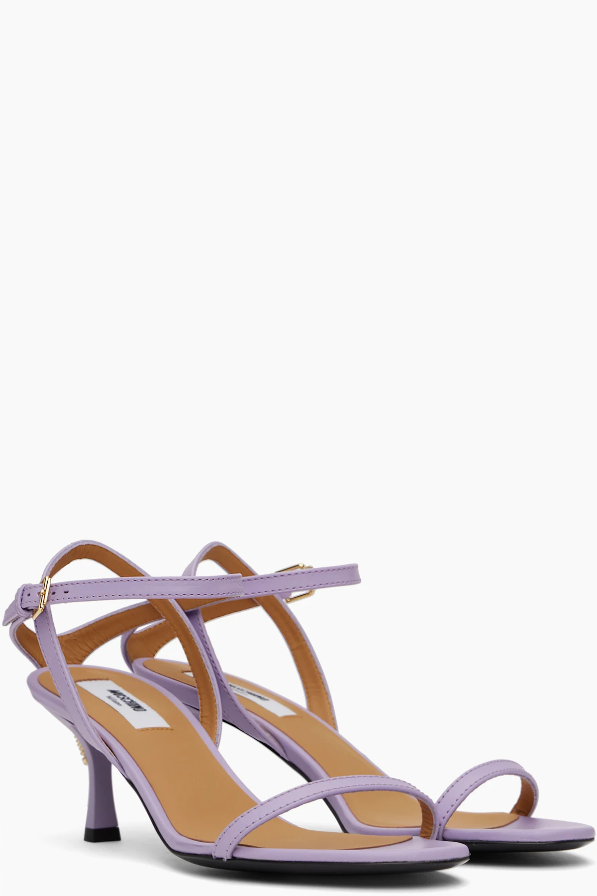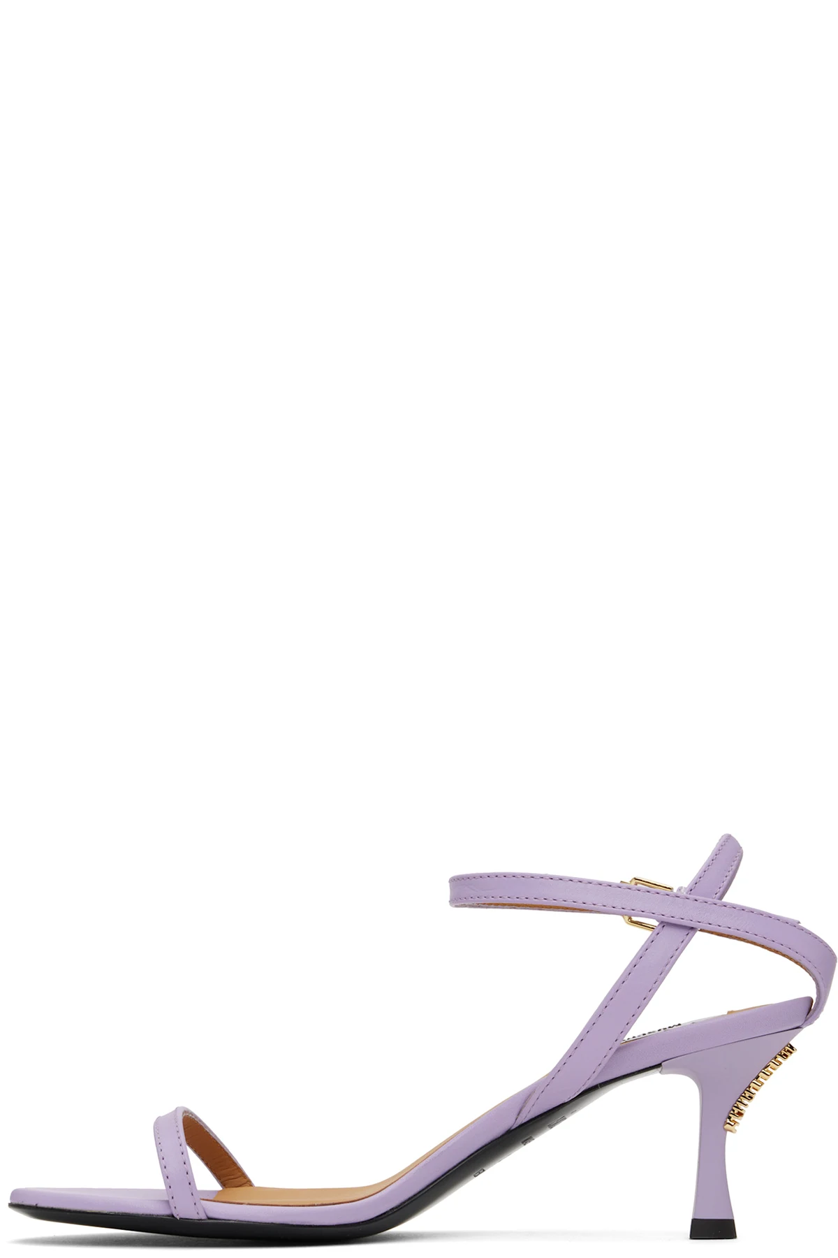 Buffed calfskin heeled sandals in purple.