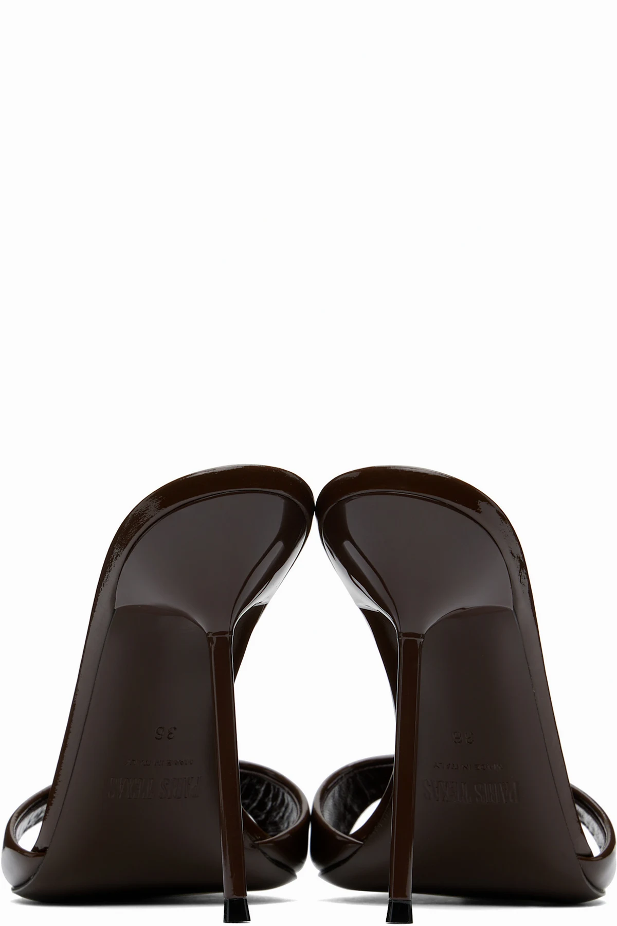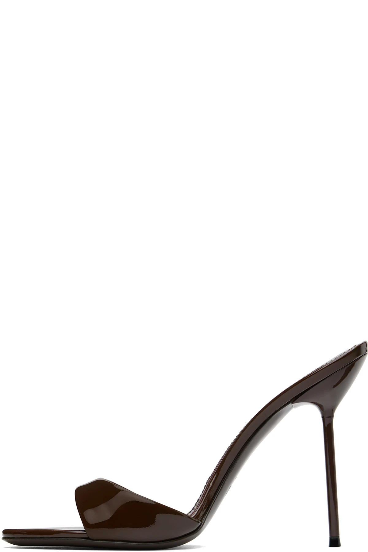 Patent leather mules in brown.