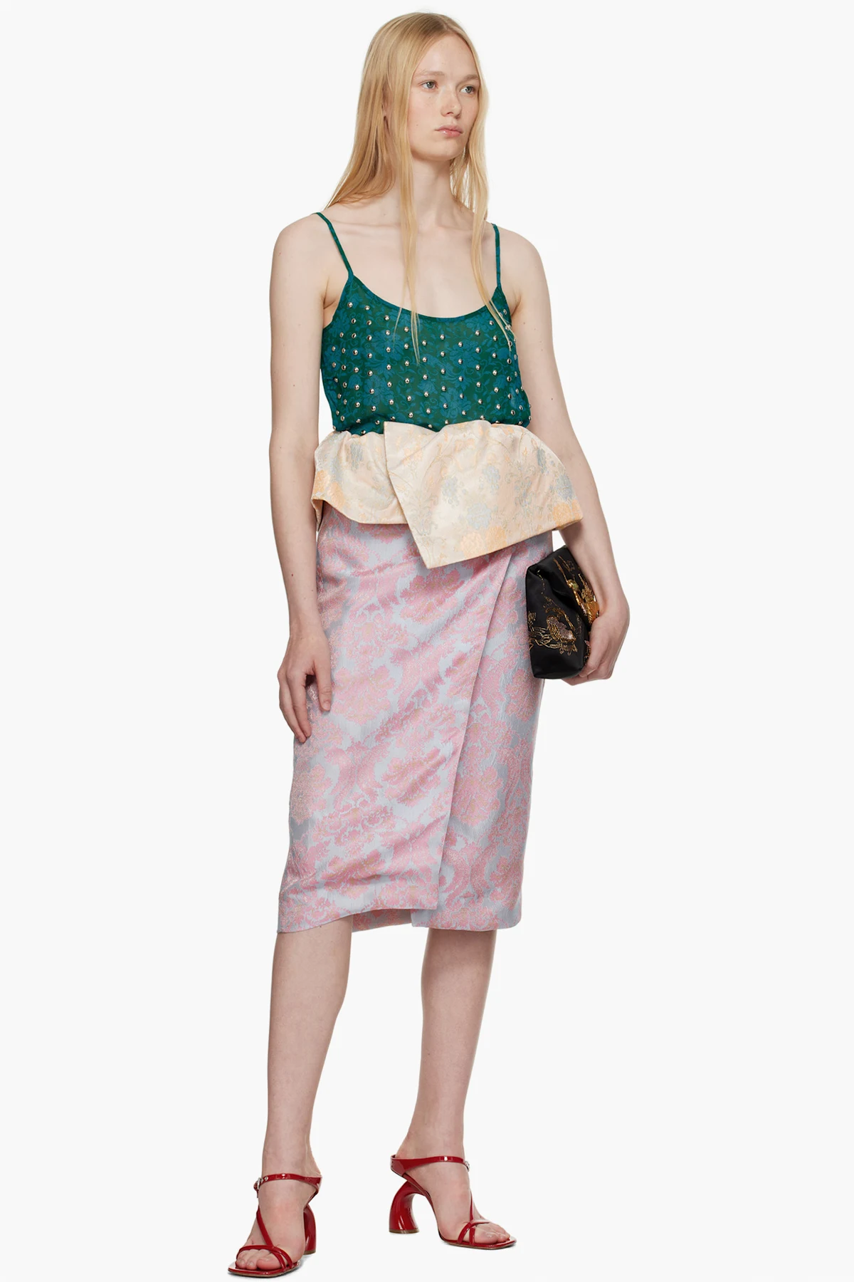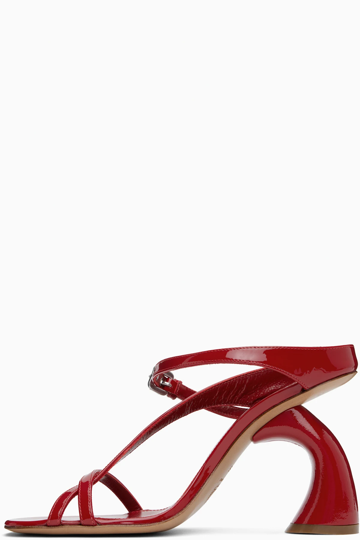 Red Strappy Sculptural Heeled Sandals