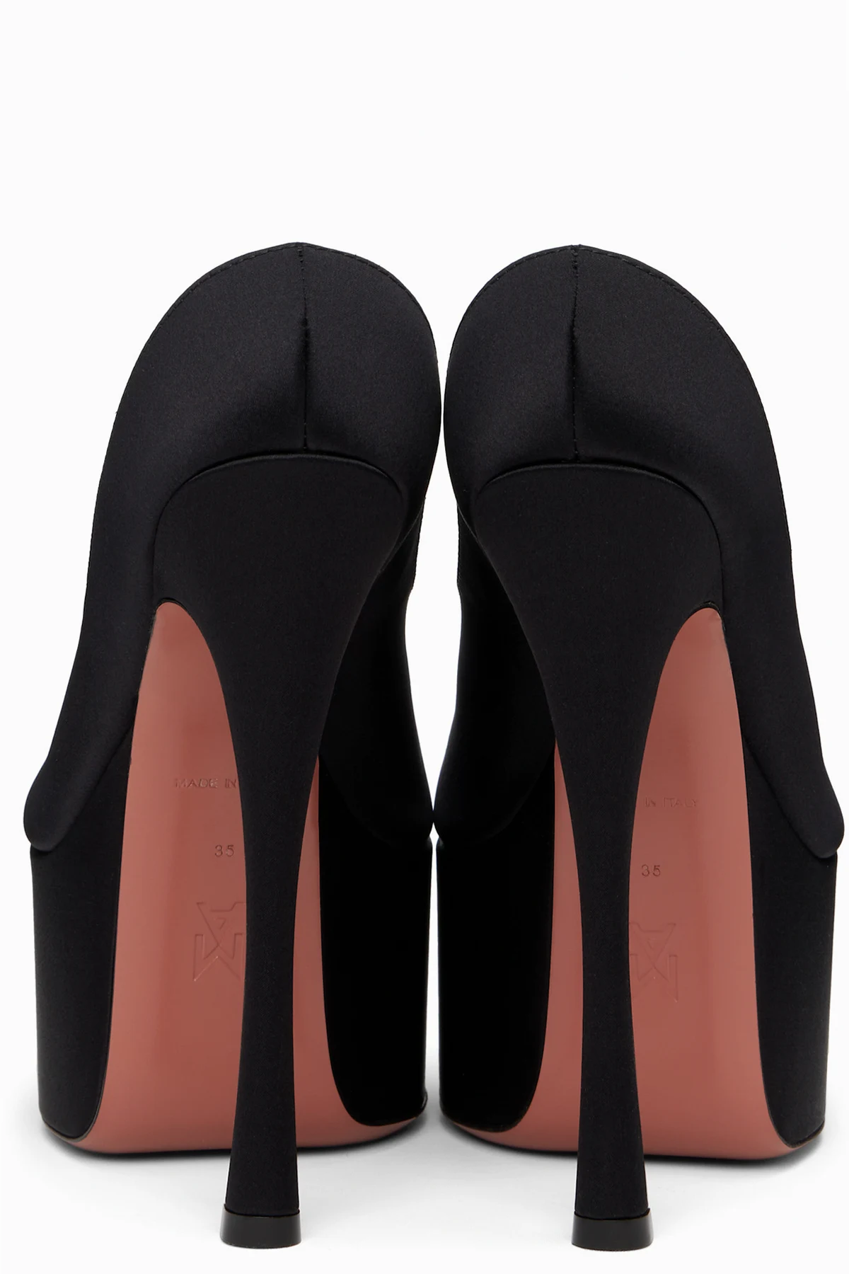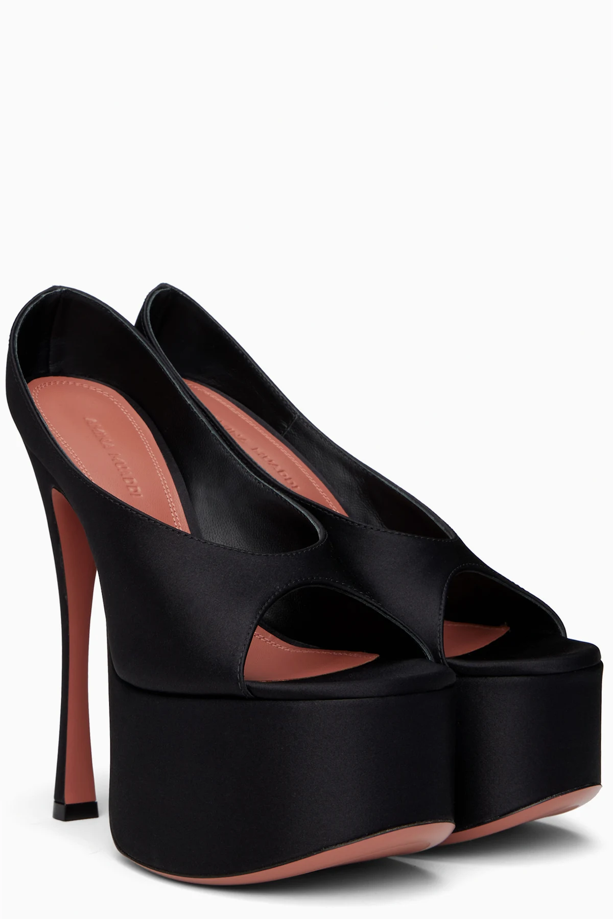 Silk satin heeled sandals in black.