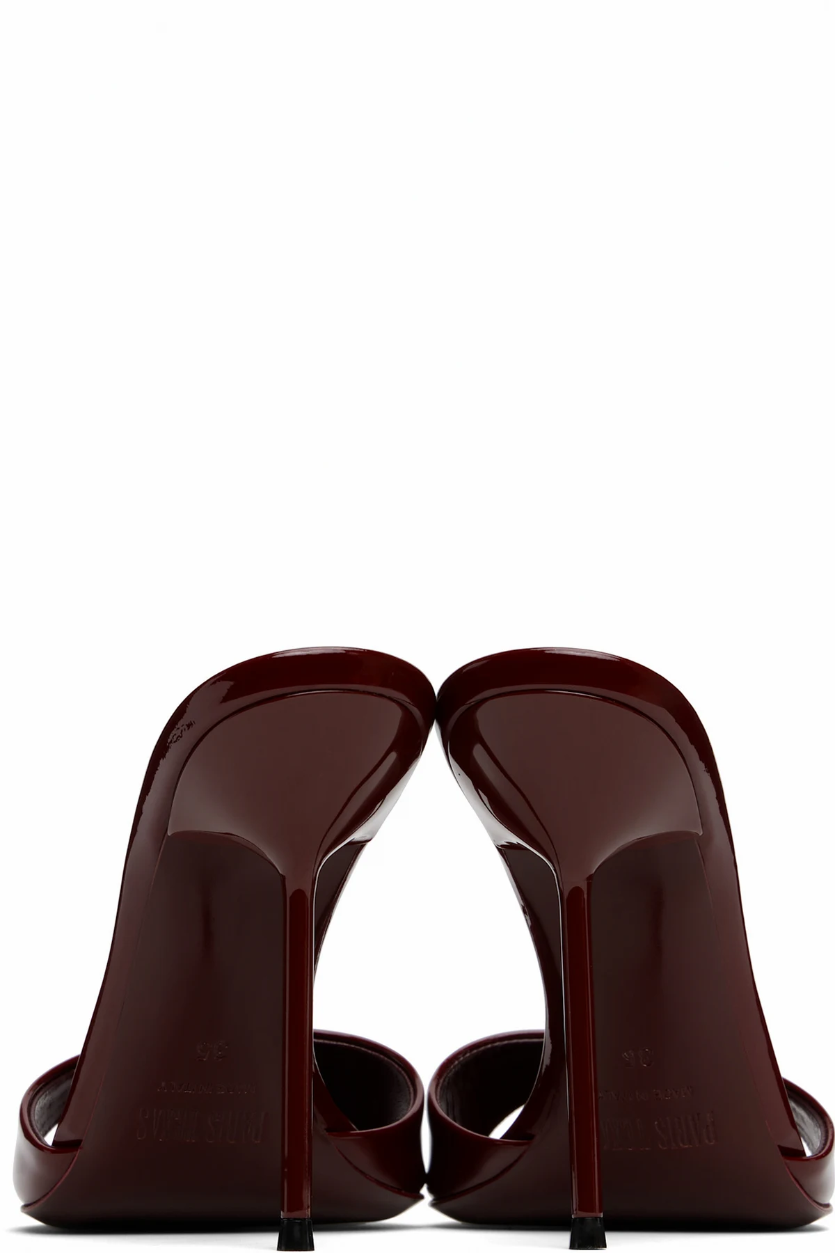Patent leather mules.