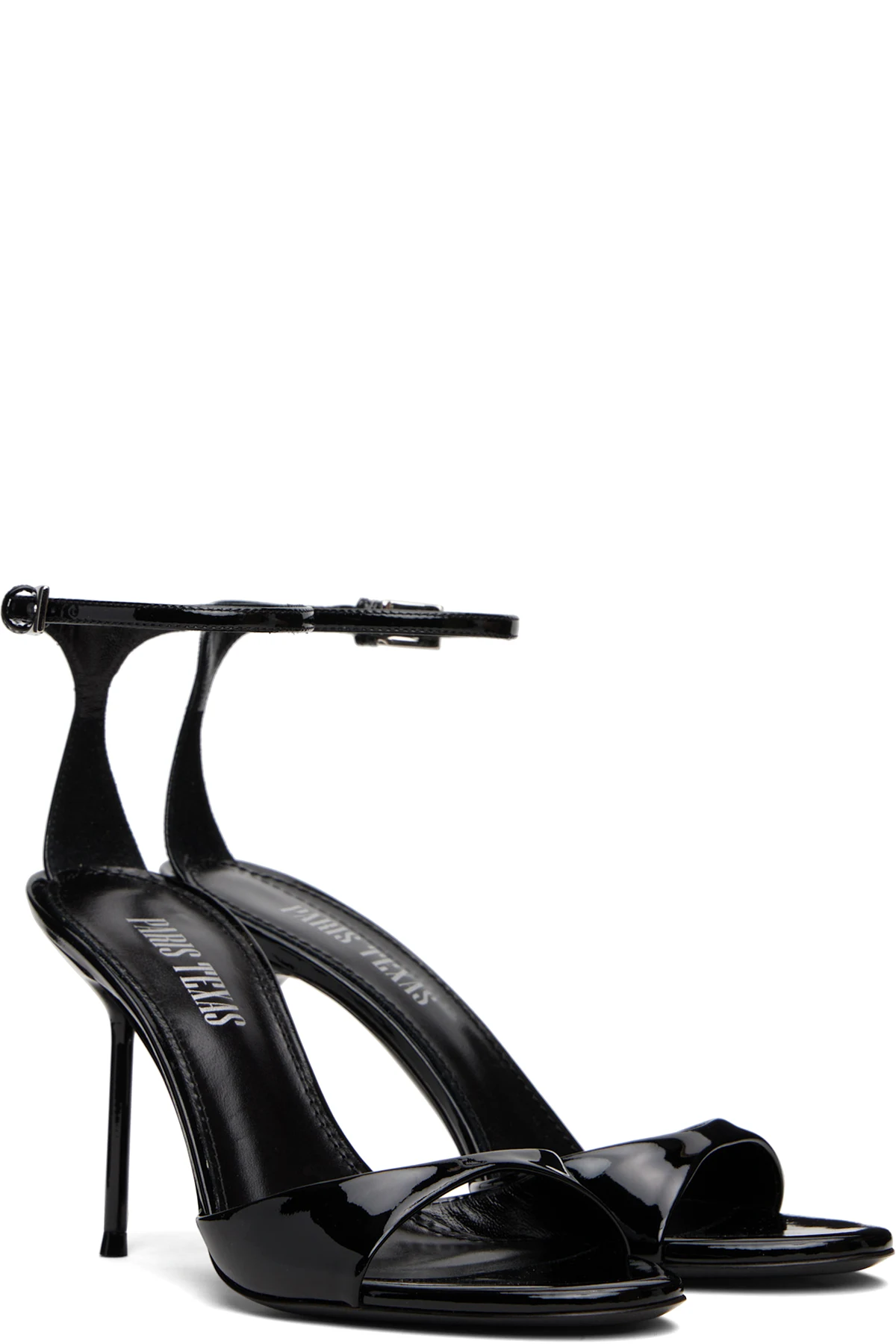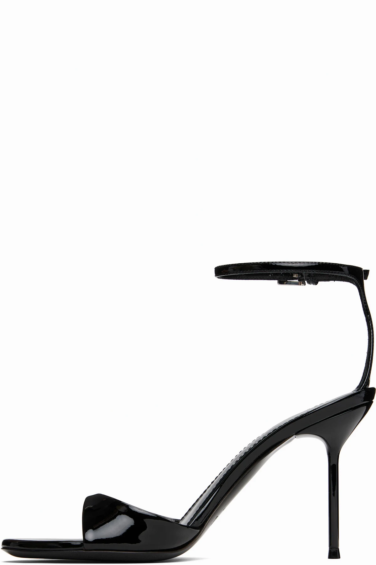 Patent leather heeled sandals.