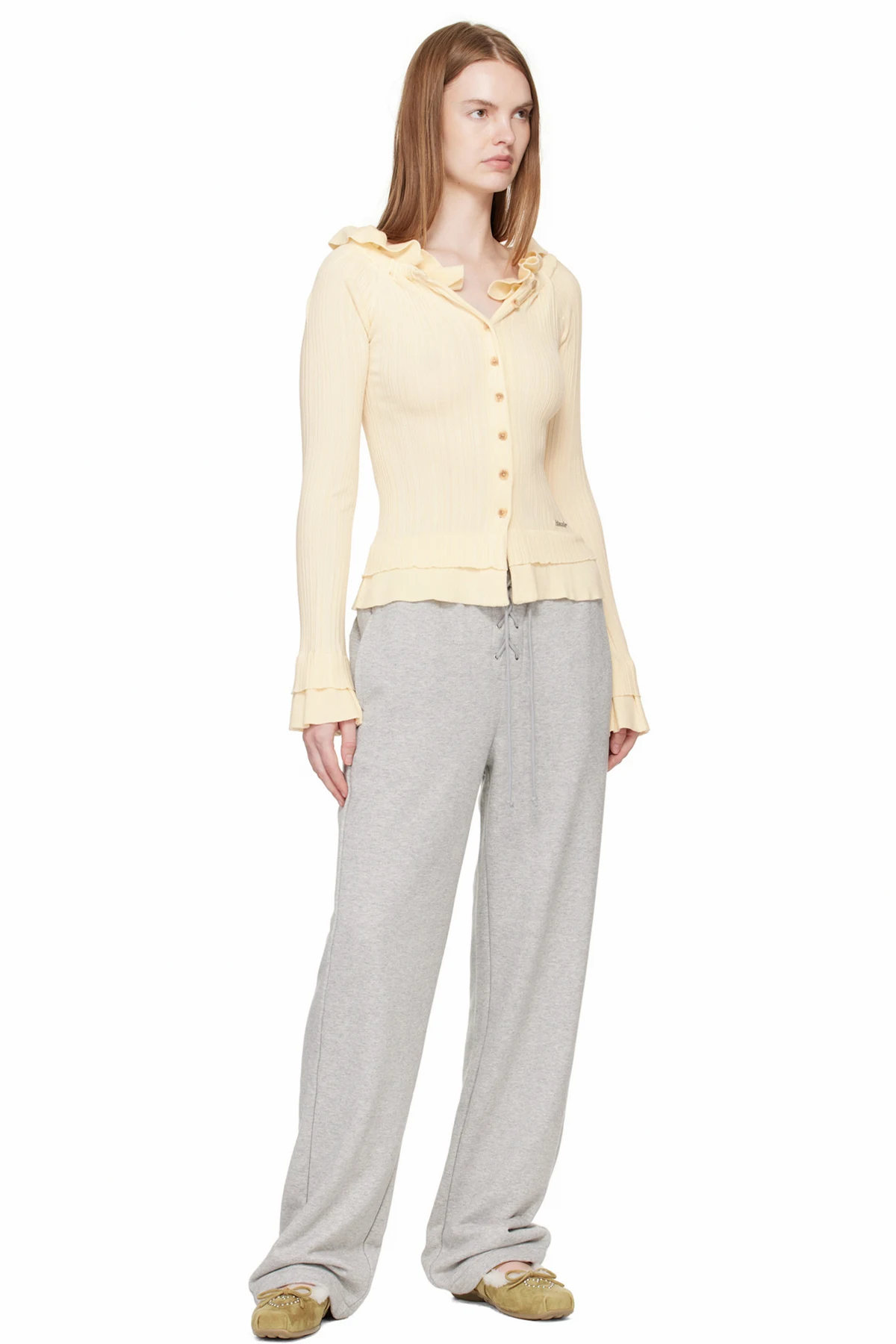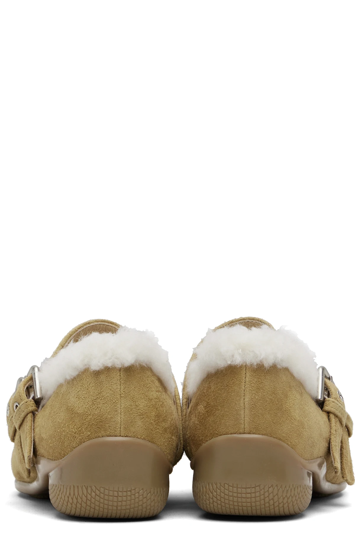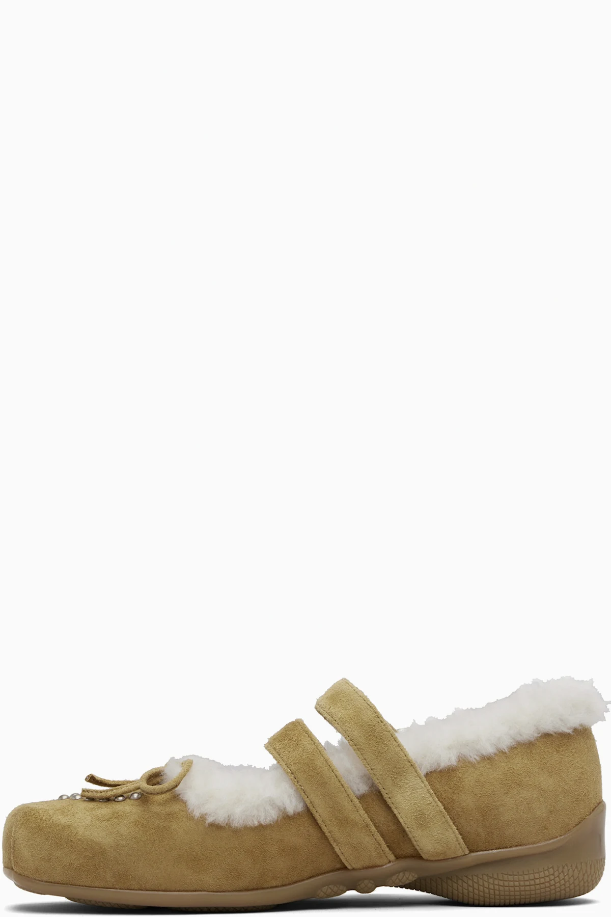 Tan Shearling Heart Stud Ballet Flats