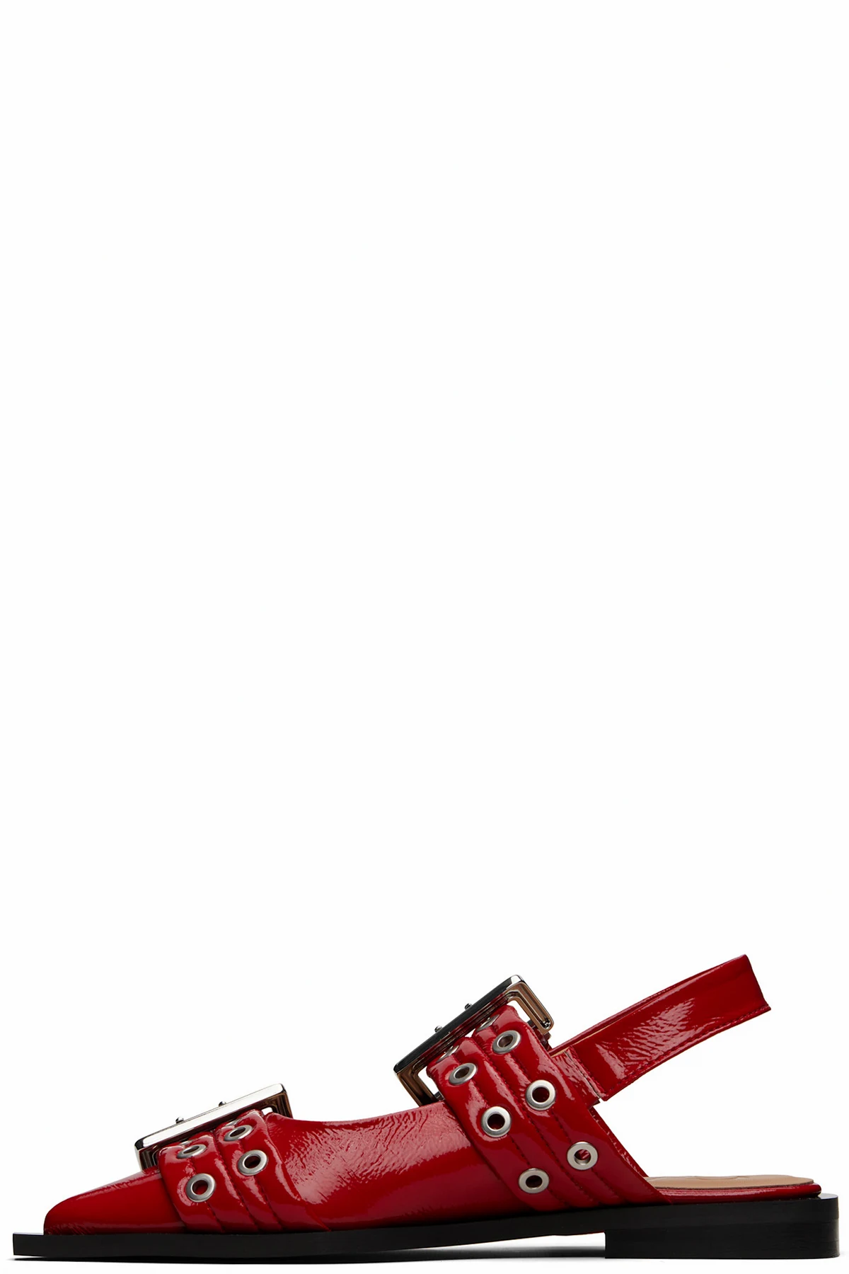 Red Feminine Buckle Ballerina Flats