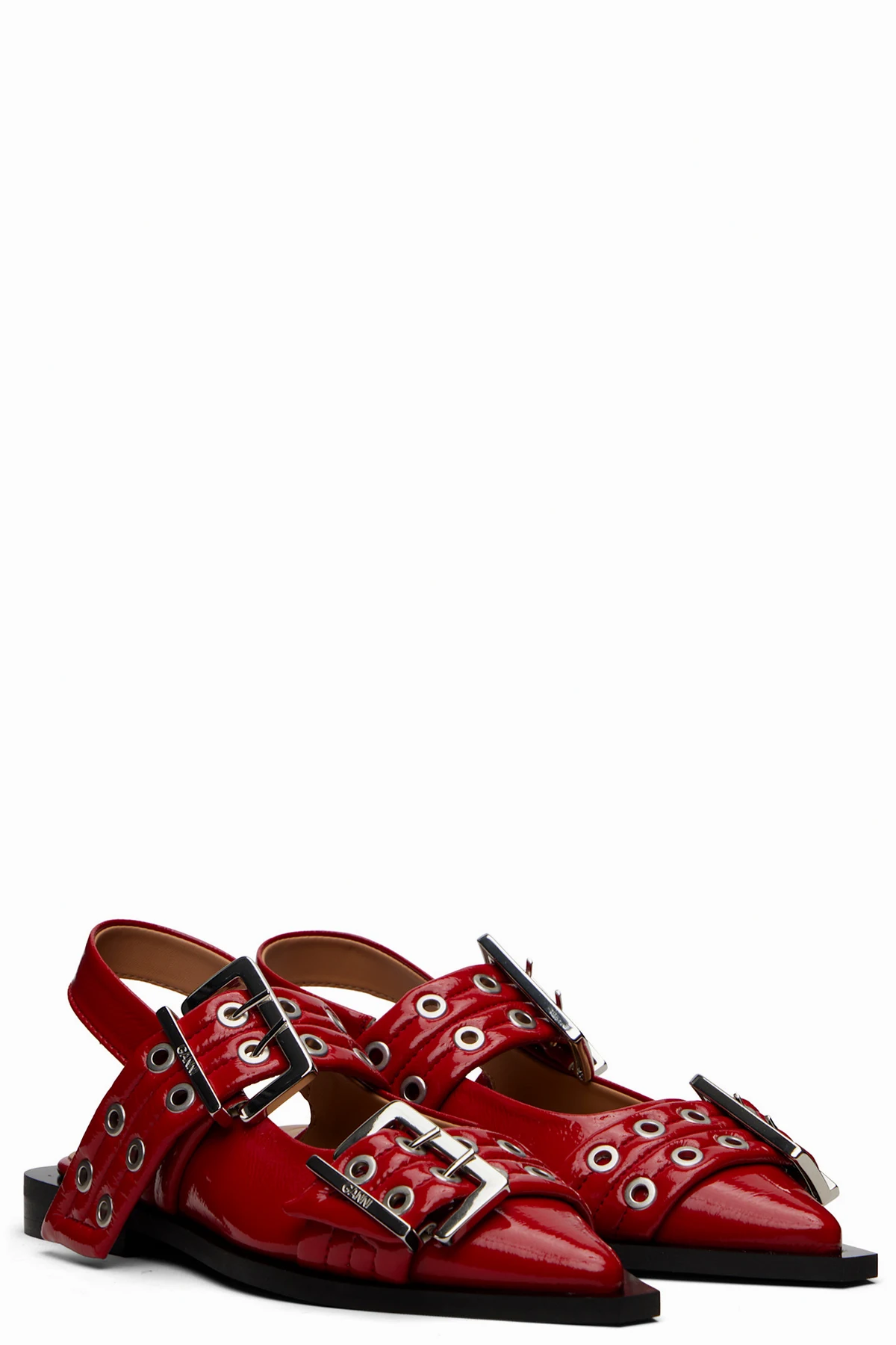 Patent faux-leather ballerina flats.