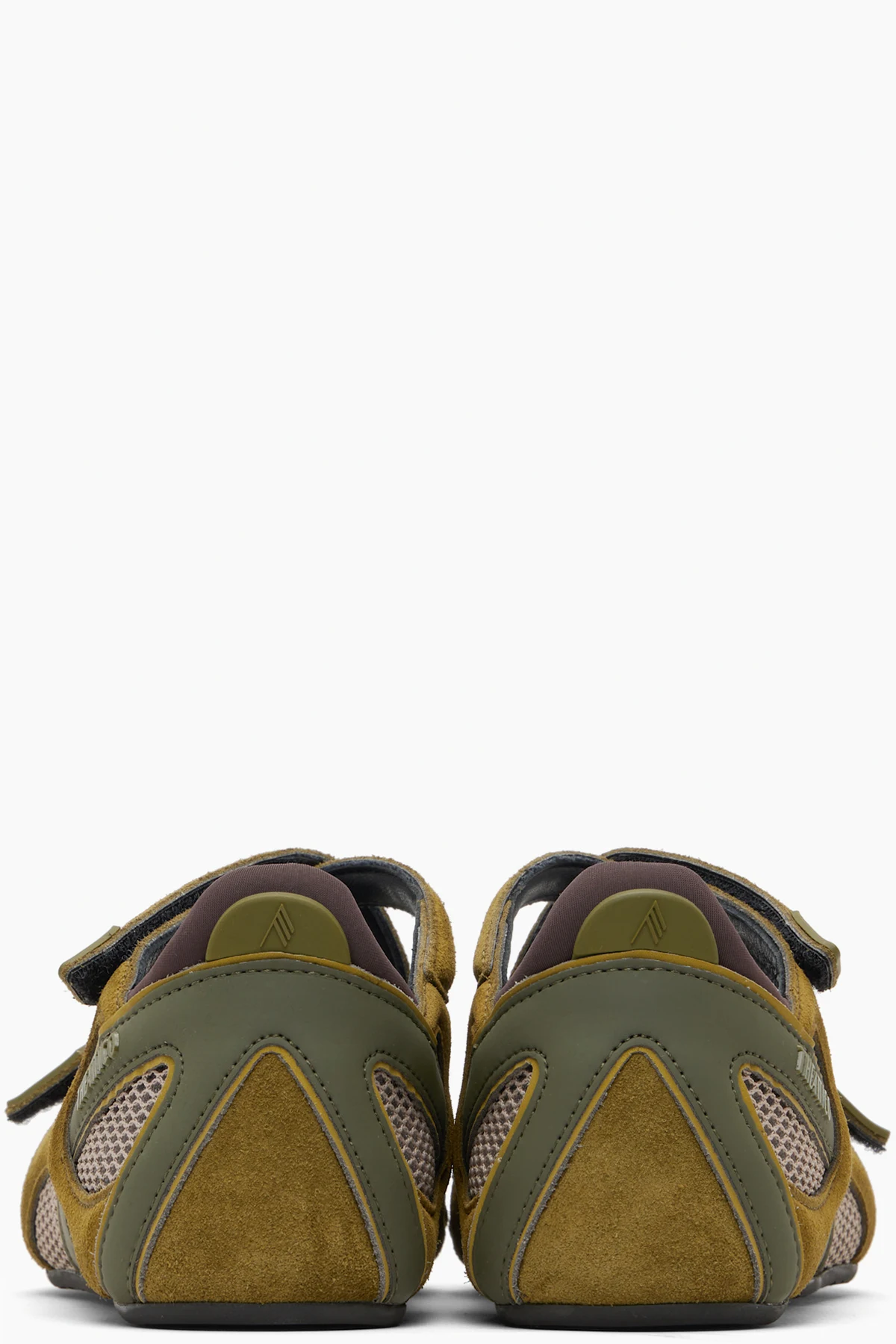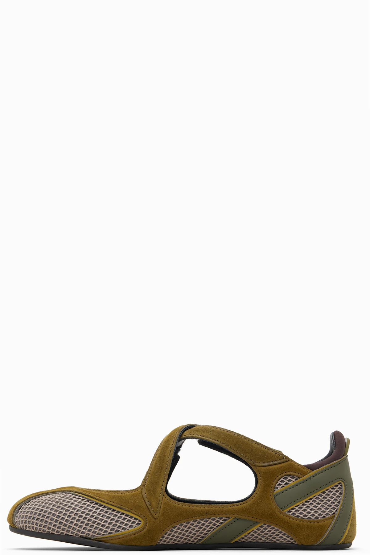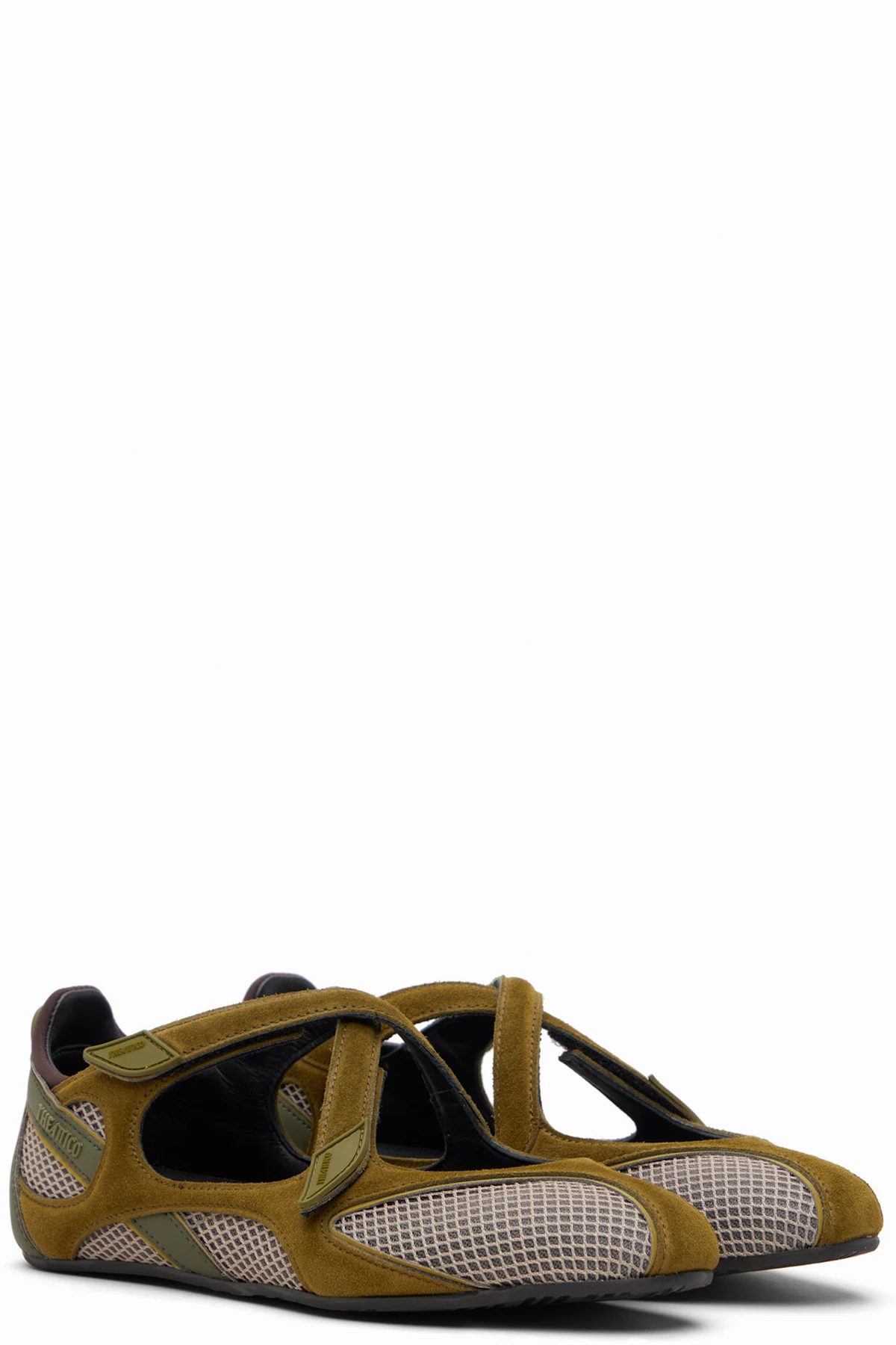 Suede, mesh, and rubber Mary Jane-style ballerina flats.