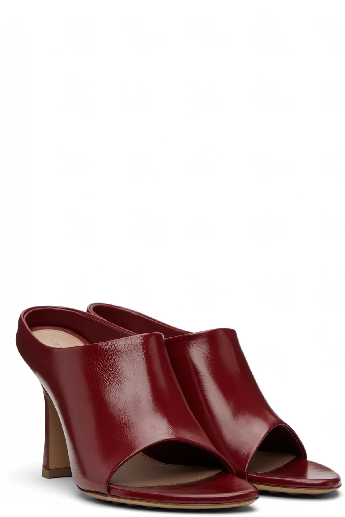 Buffed calfskin slip-on heel sandals.