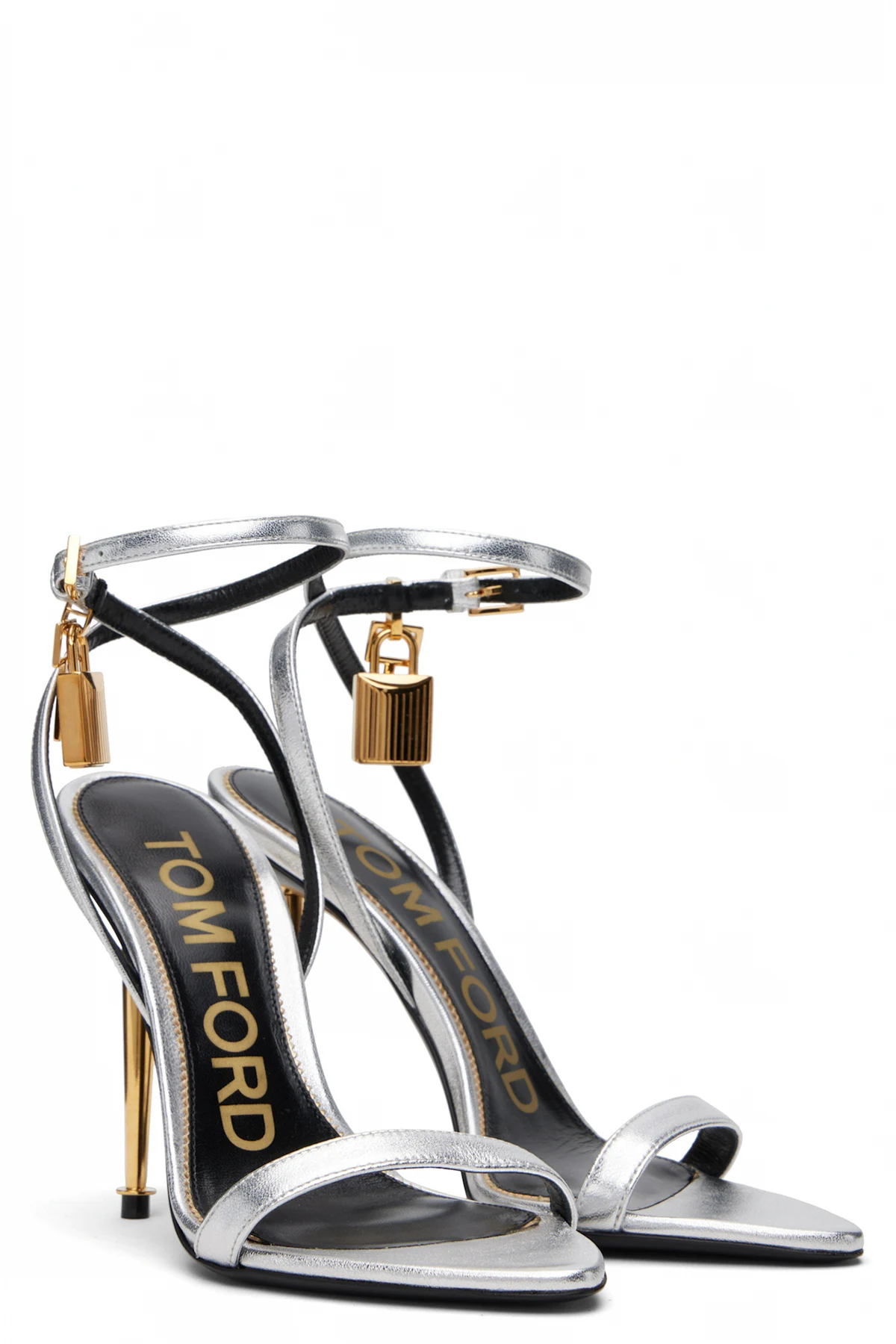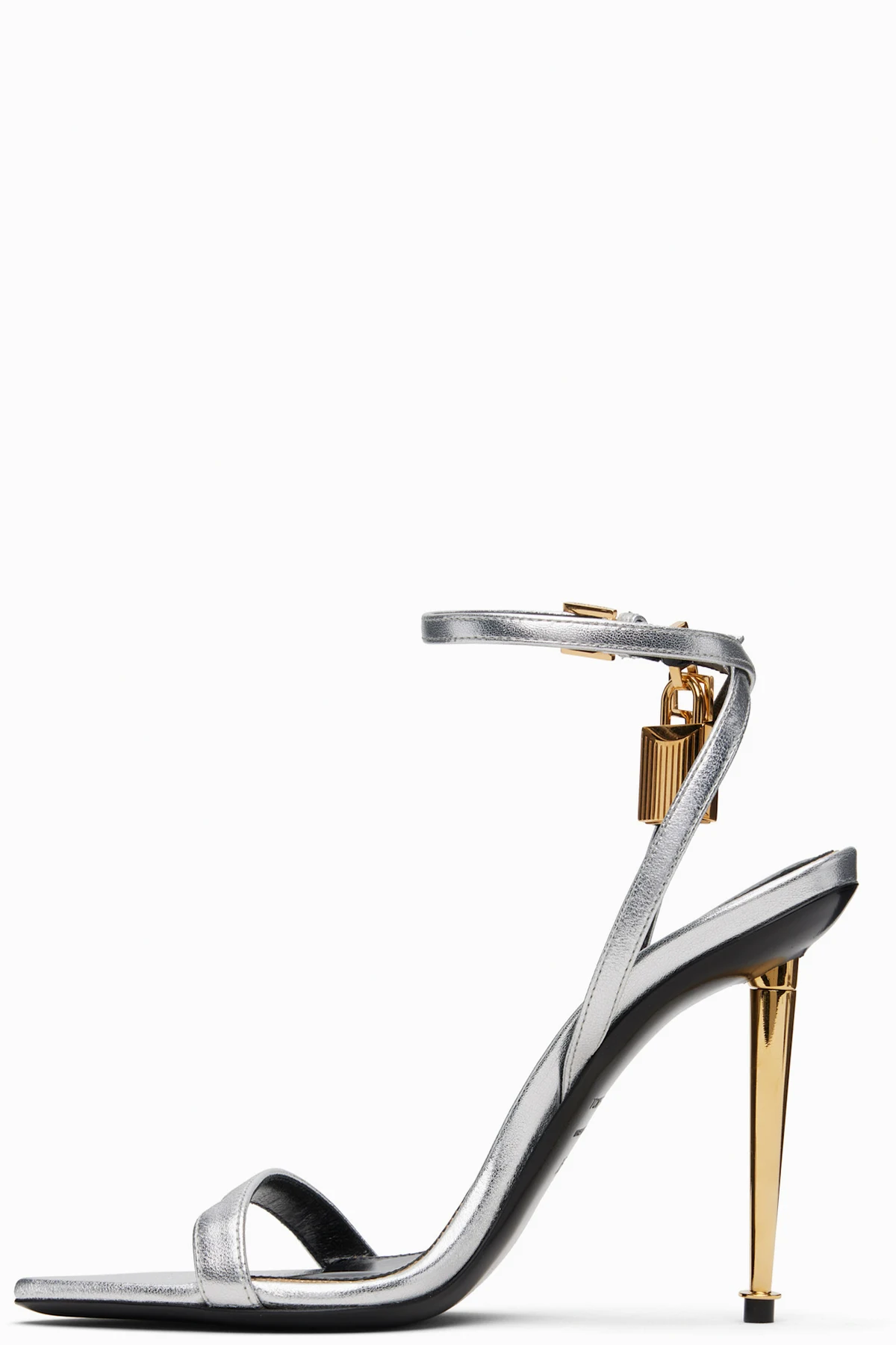 Silver Nappa Padlock Pointy Naked Heeled Sandals