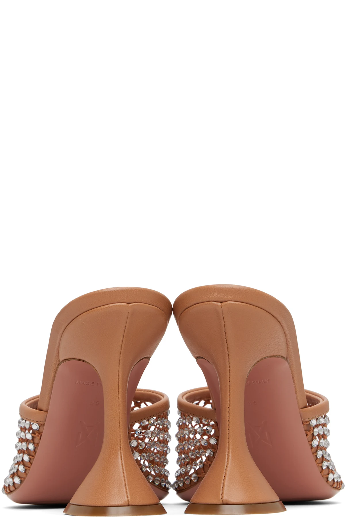 Tan Lupita Crystal Net Slipper Heeled Sandals