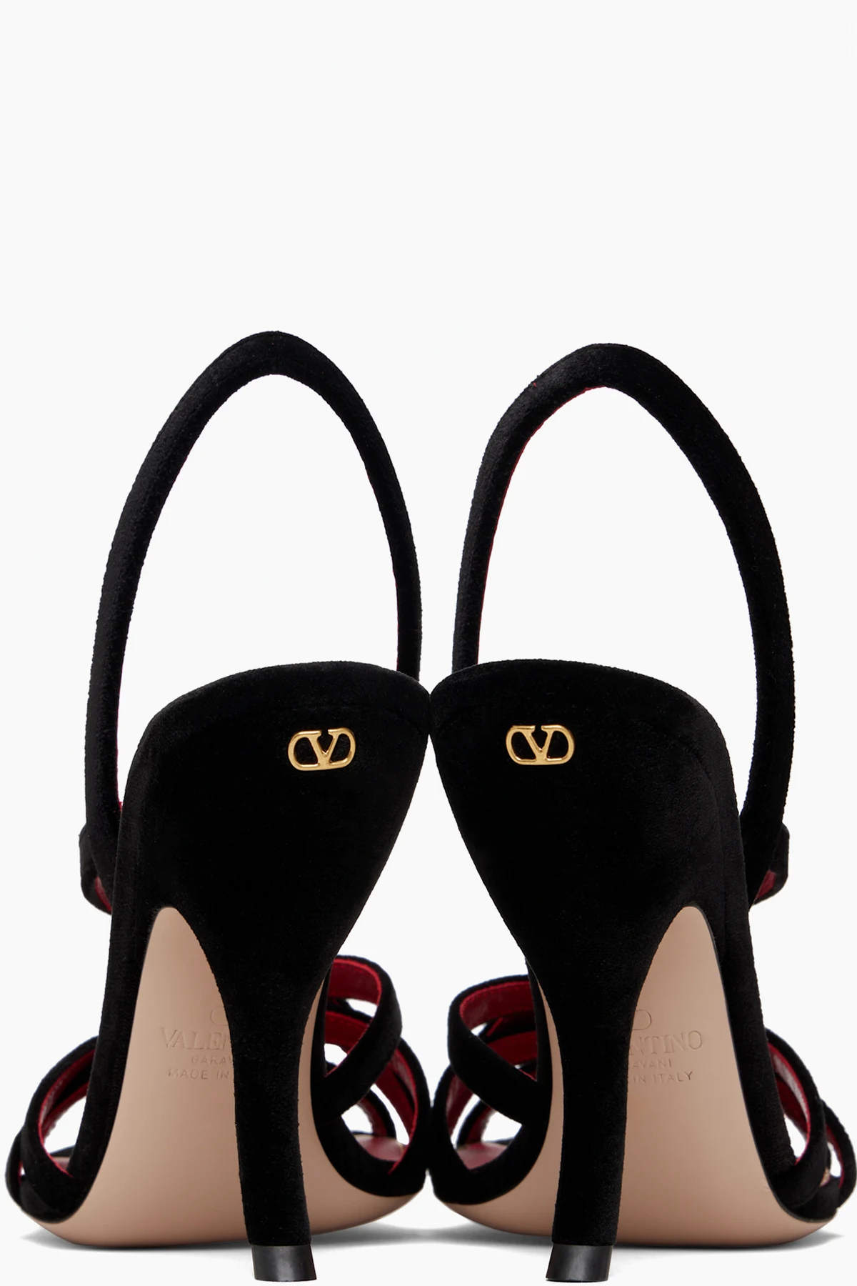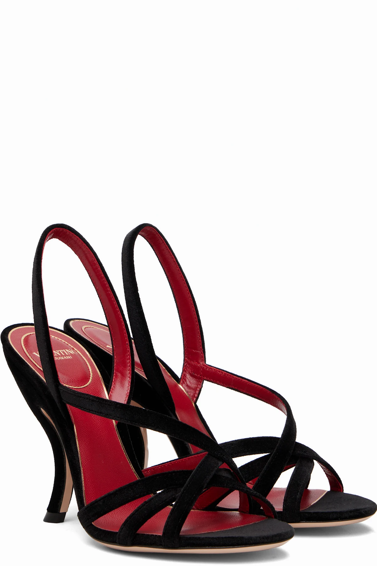 Velvet heeled sandals.