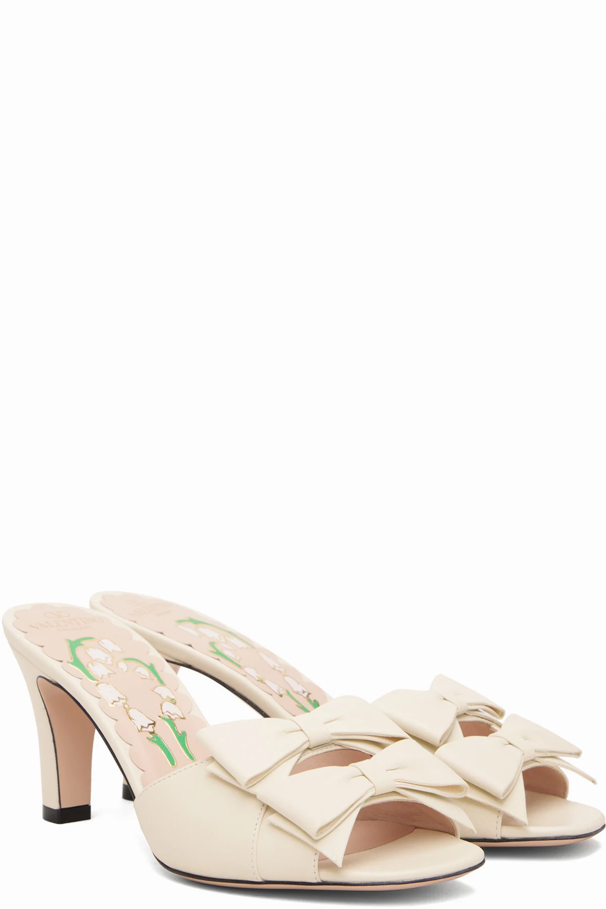 Off-White Leather Bow Heeled Sandals