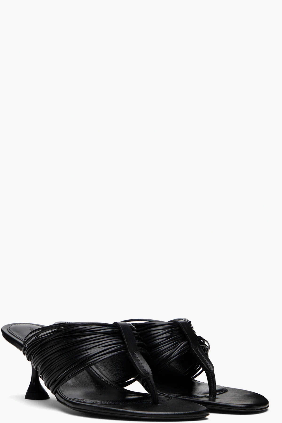Black Cable T-Strap Heeled Sandals