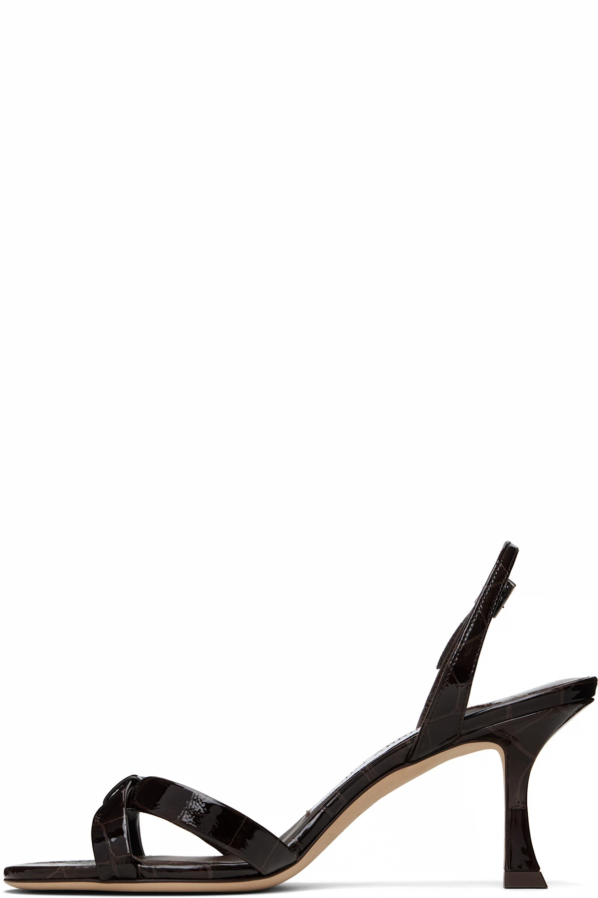 Croc-embossed patent calfskin heeled sandals.