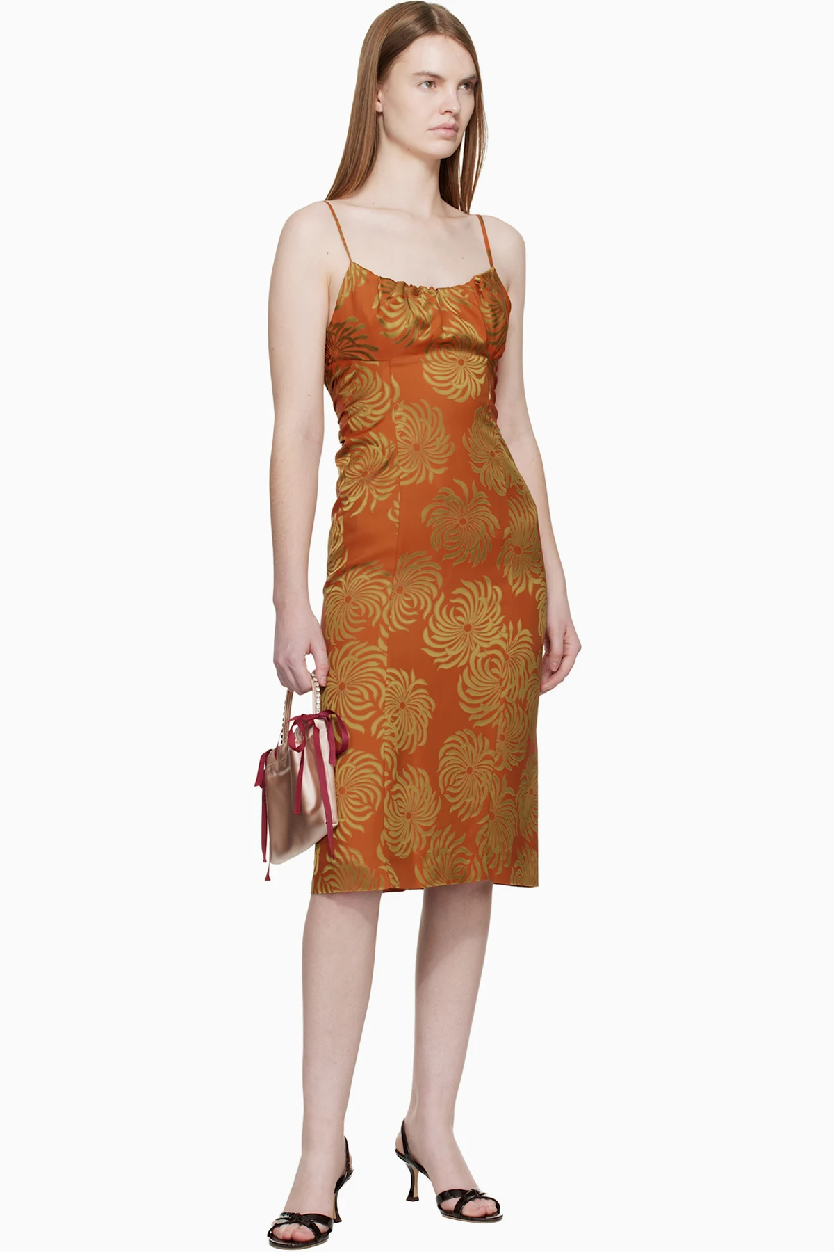 · Crisscrossing straps at vamp
