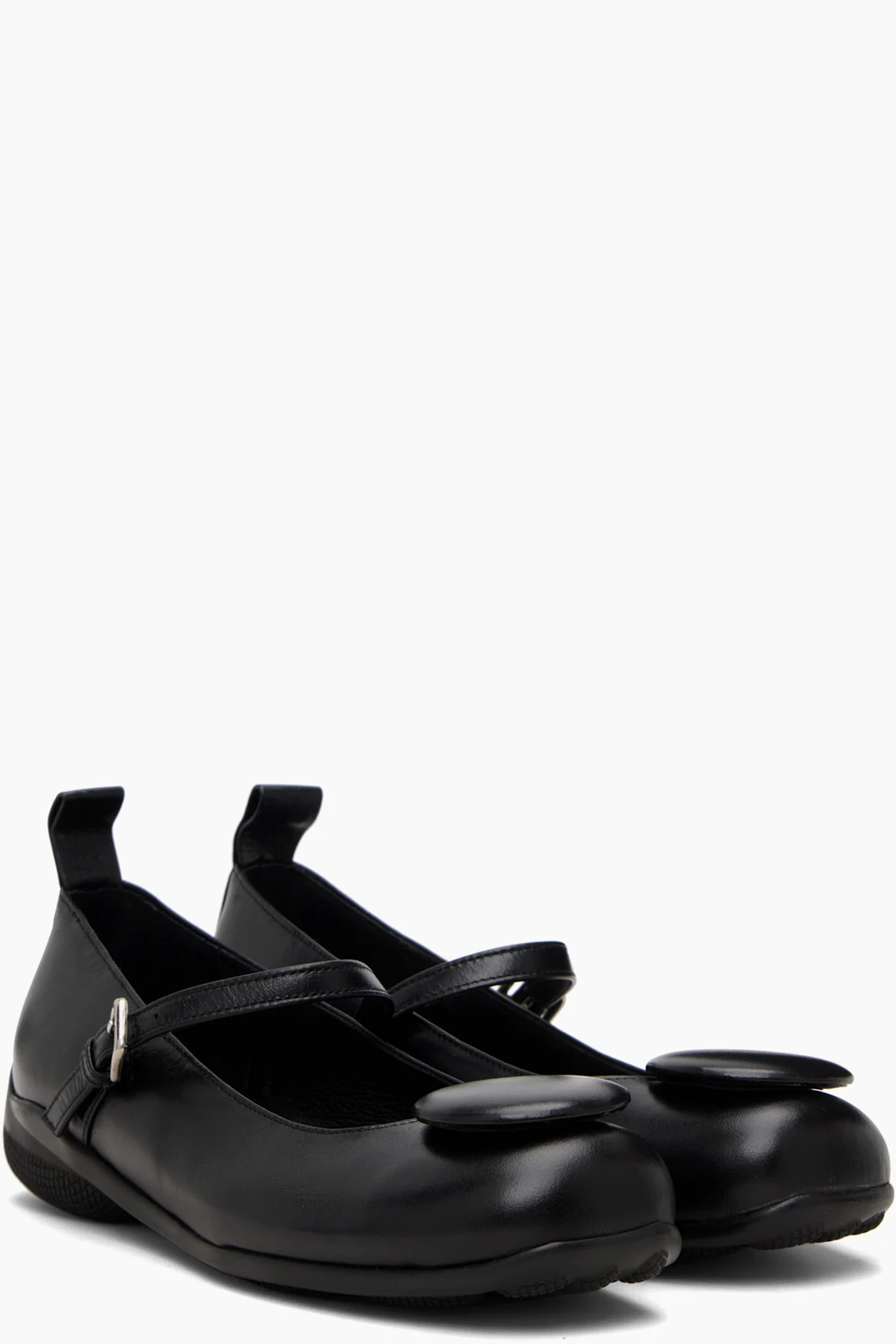Buffed leather Mary-Jane style flats.