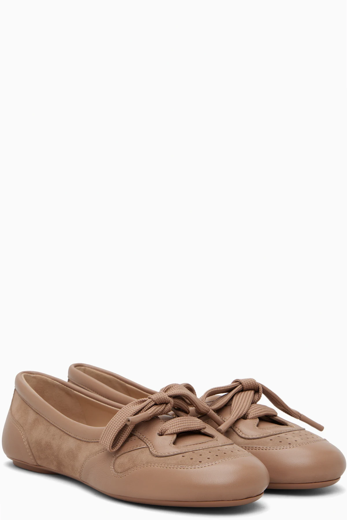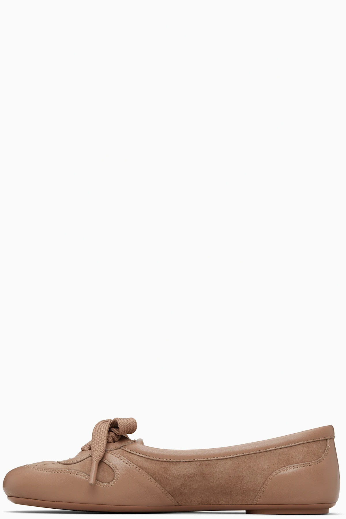 Handcrafted buffed leather and suede ballerina flats.