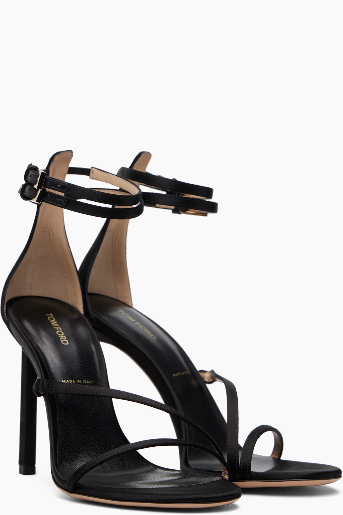 Black Satin T Ankle Strap Sandals