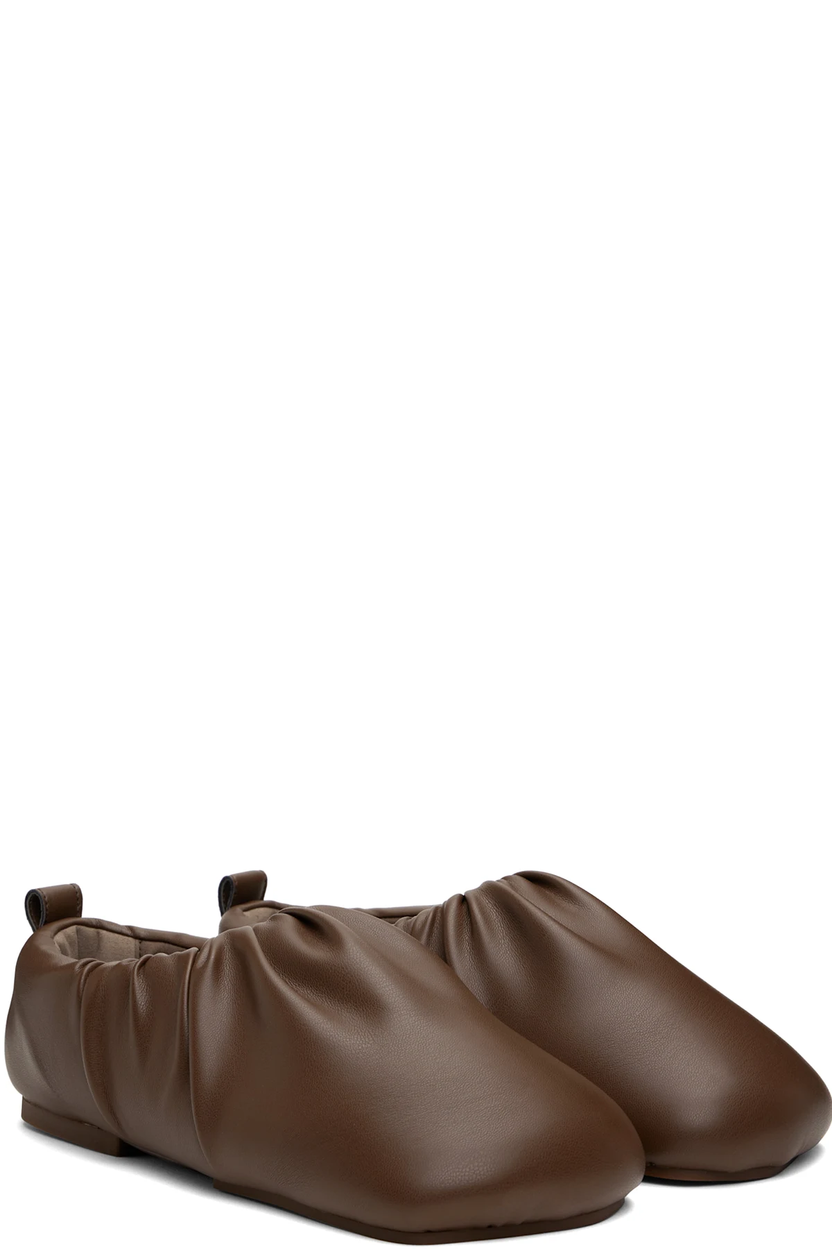 Padded buffed faux-leather slip-on loafers in brown.