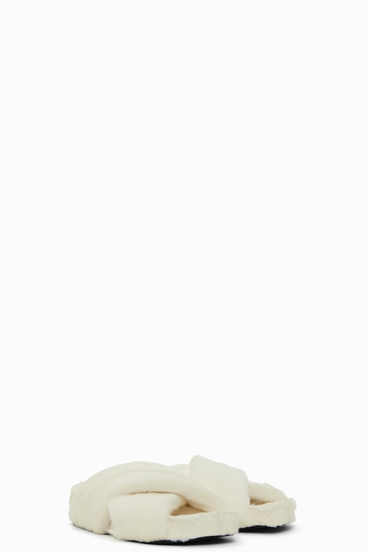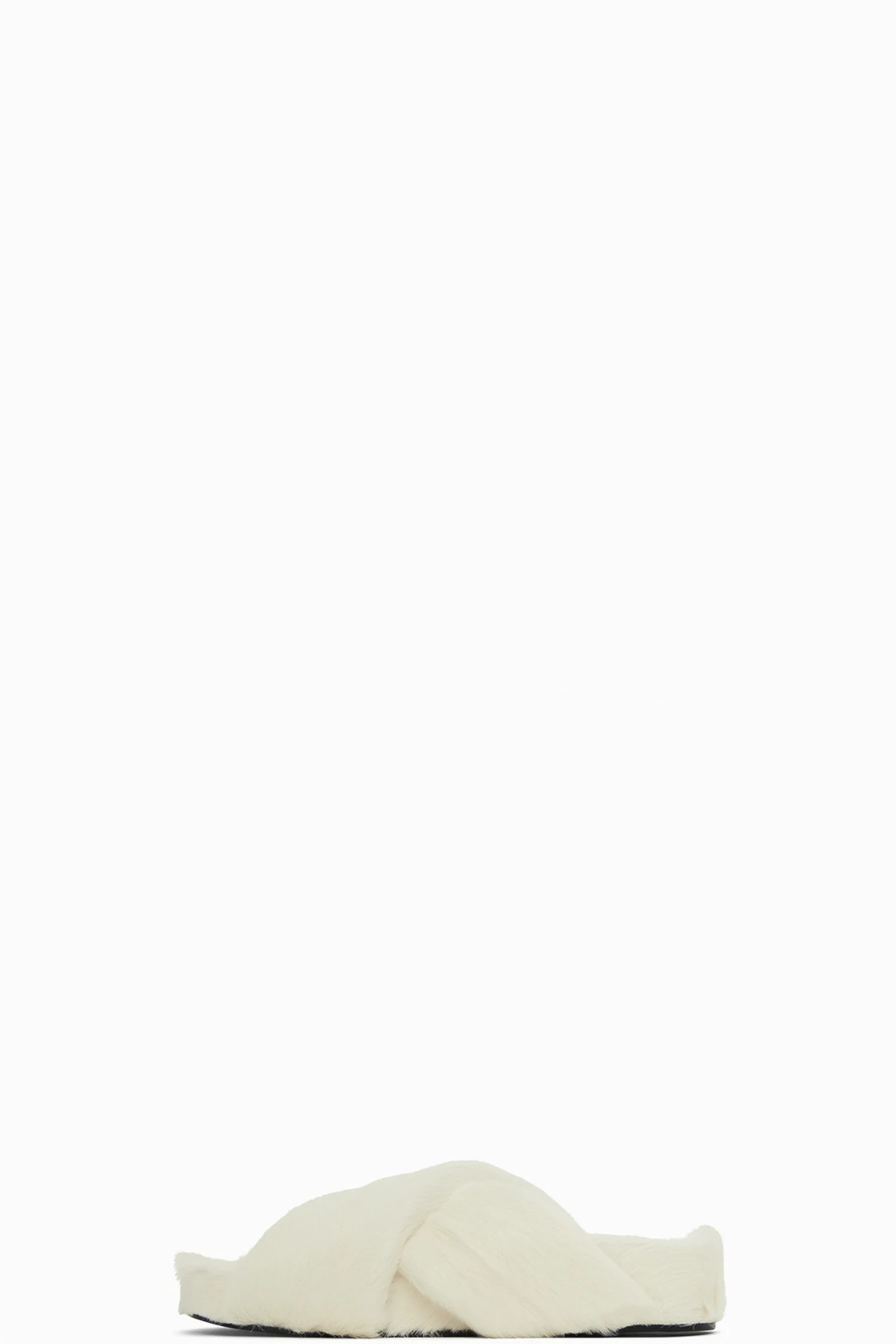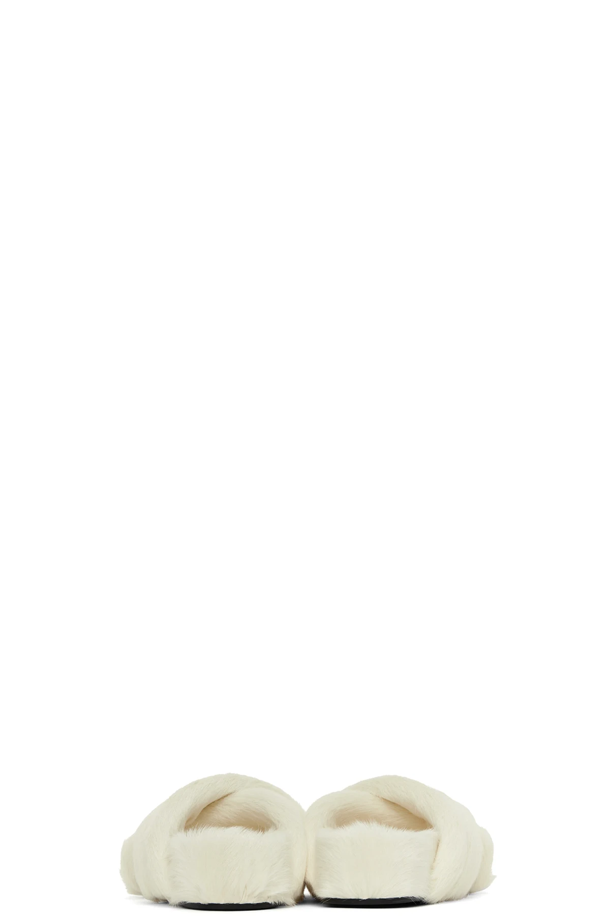 Goatskin shearling slip-on sandals in white.