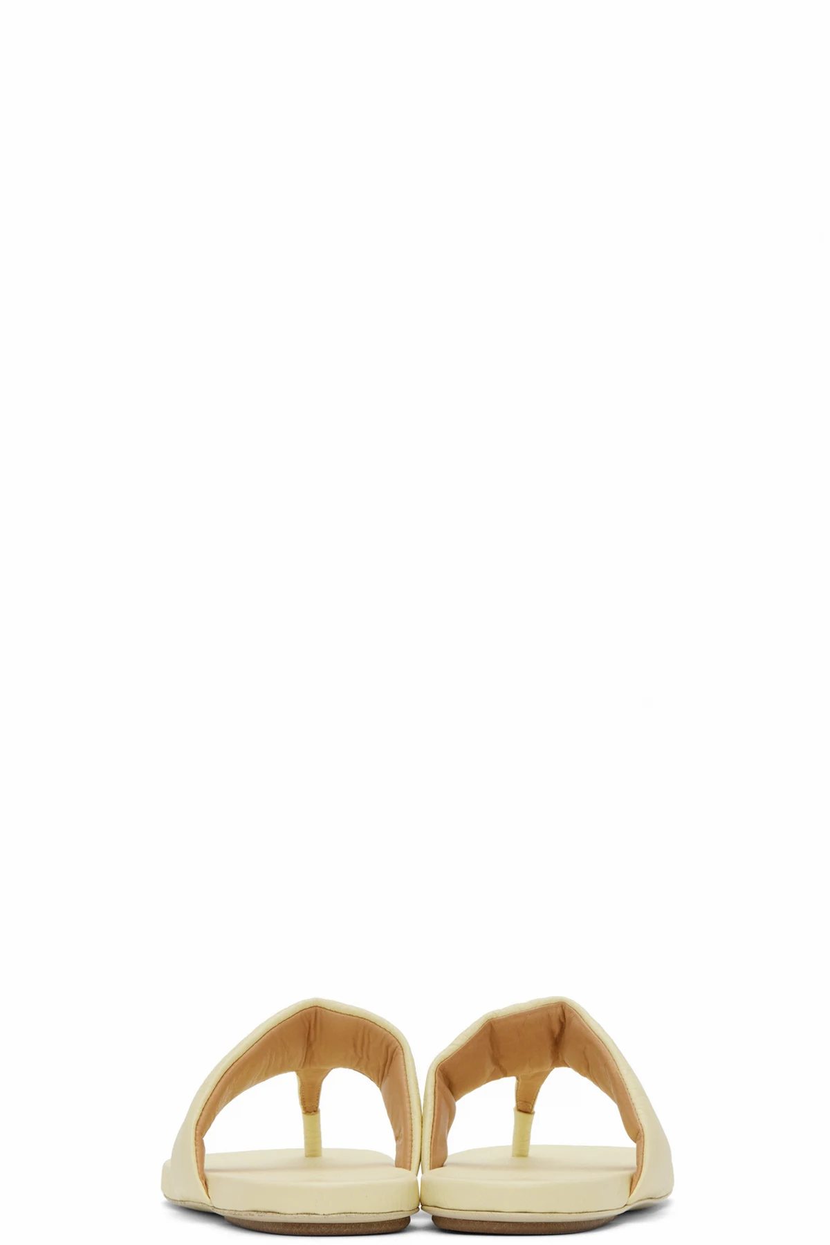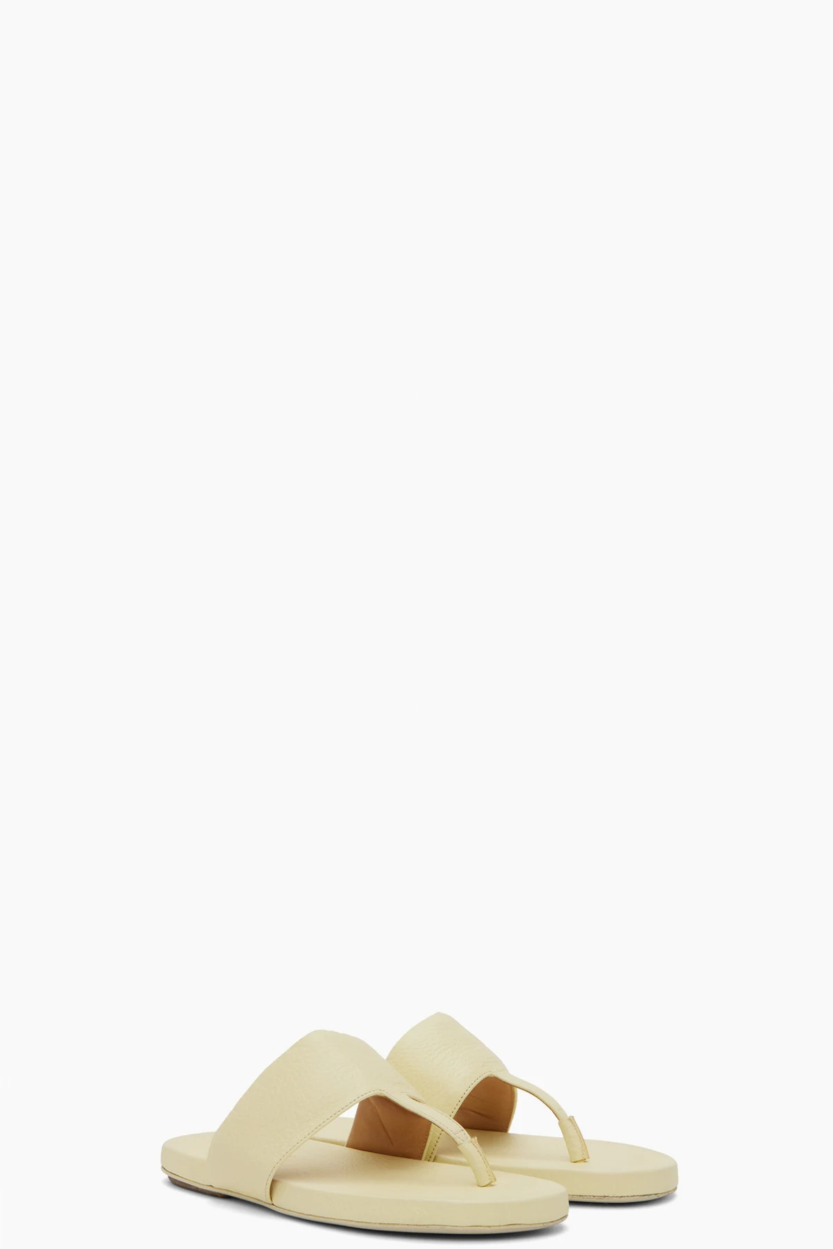 Padded pebble grained leather slip-on sandals in yellow.