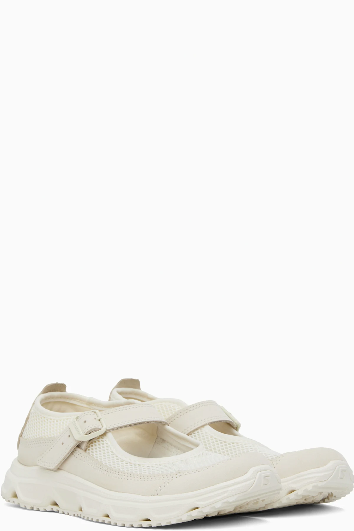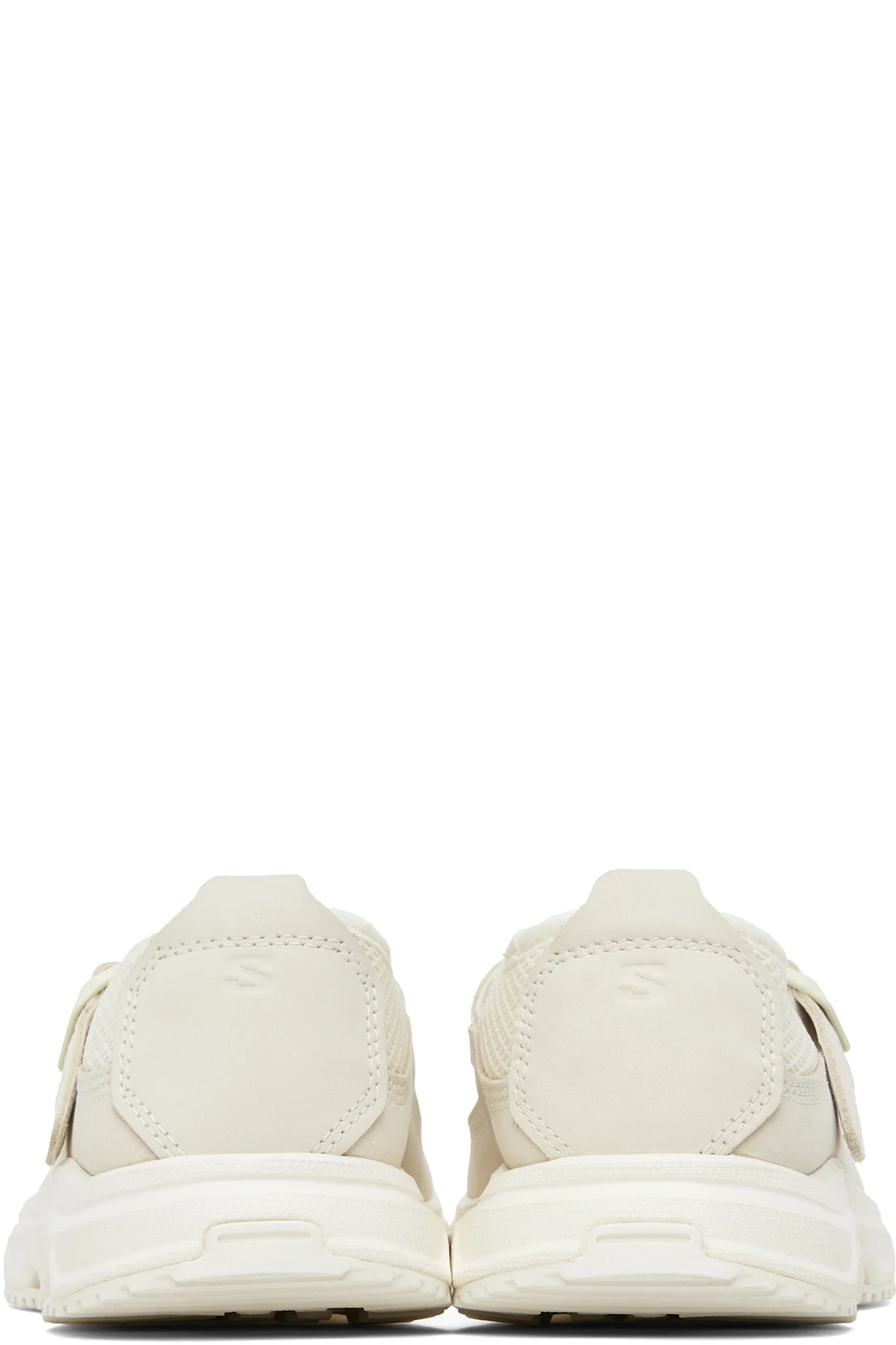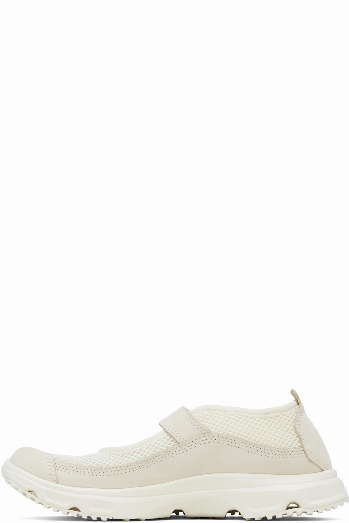 Mesh and nubuck Mary Jane-style loafers in off-white.