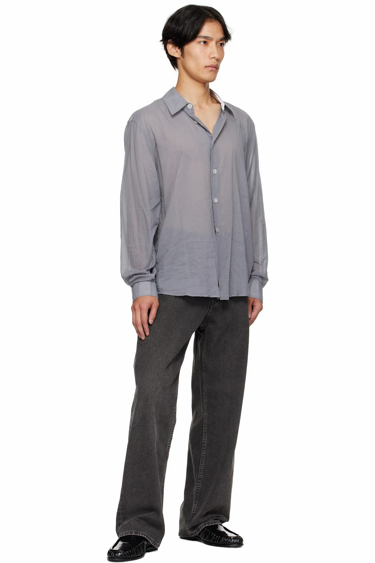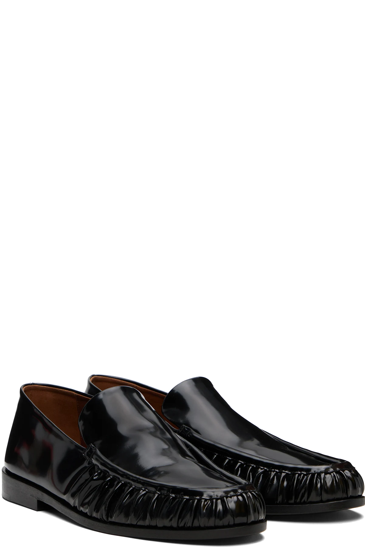 Patent leather loafers.