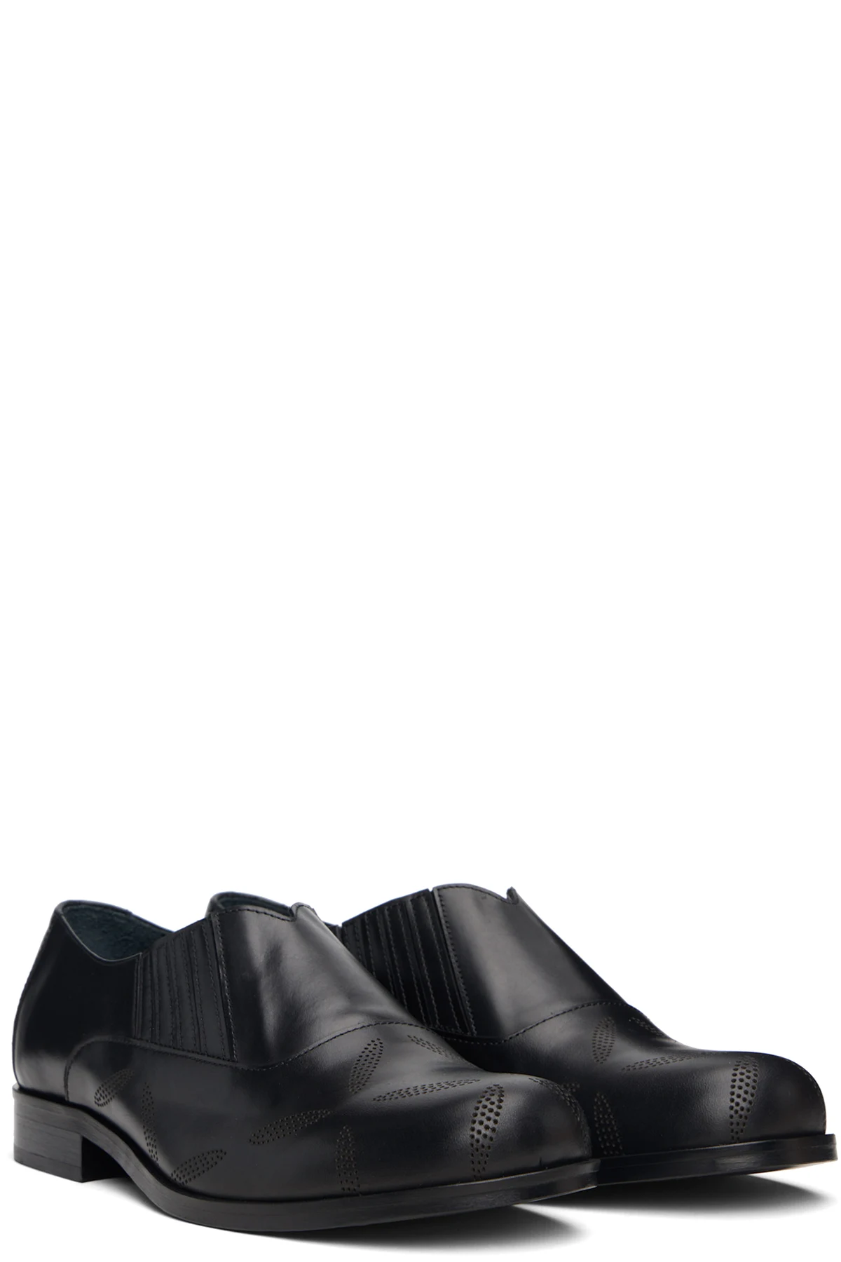 Black Perforated Slip On Loafers