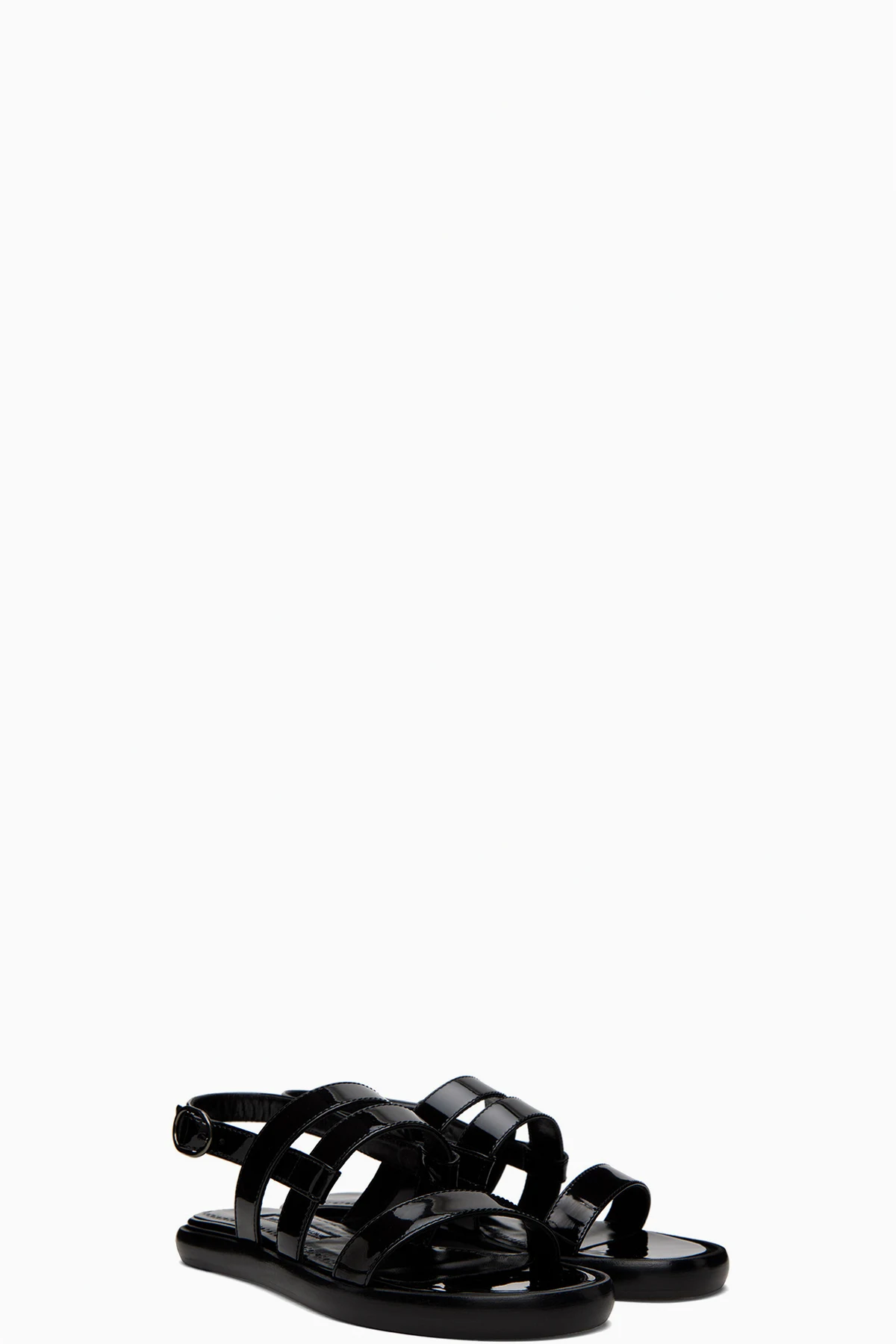 Patent leather sandals in black.