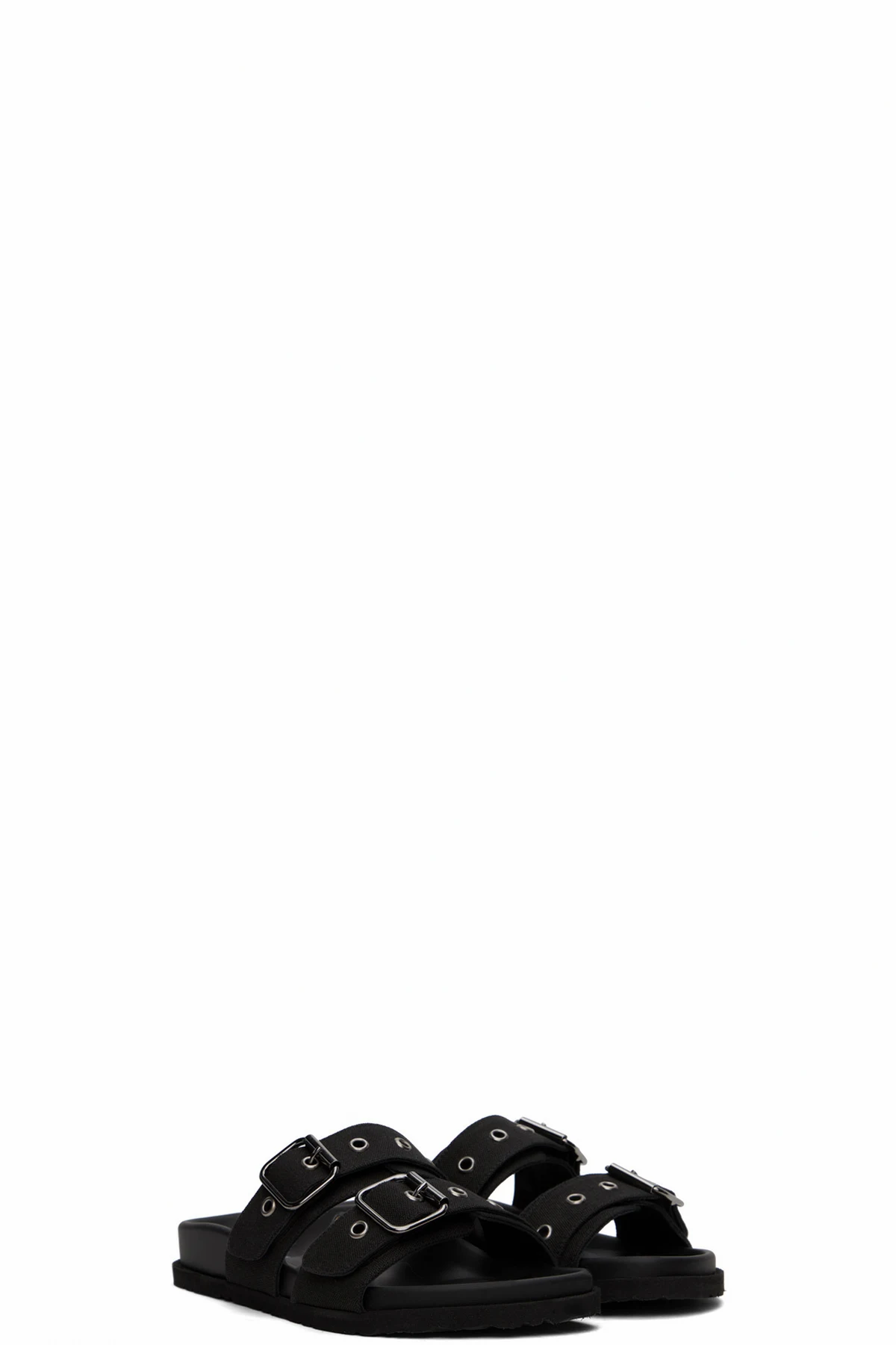 Canvas flat sandals in black.