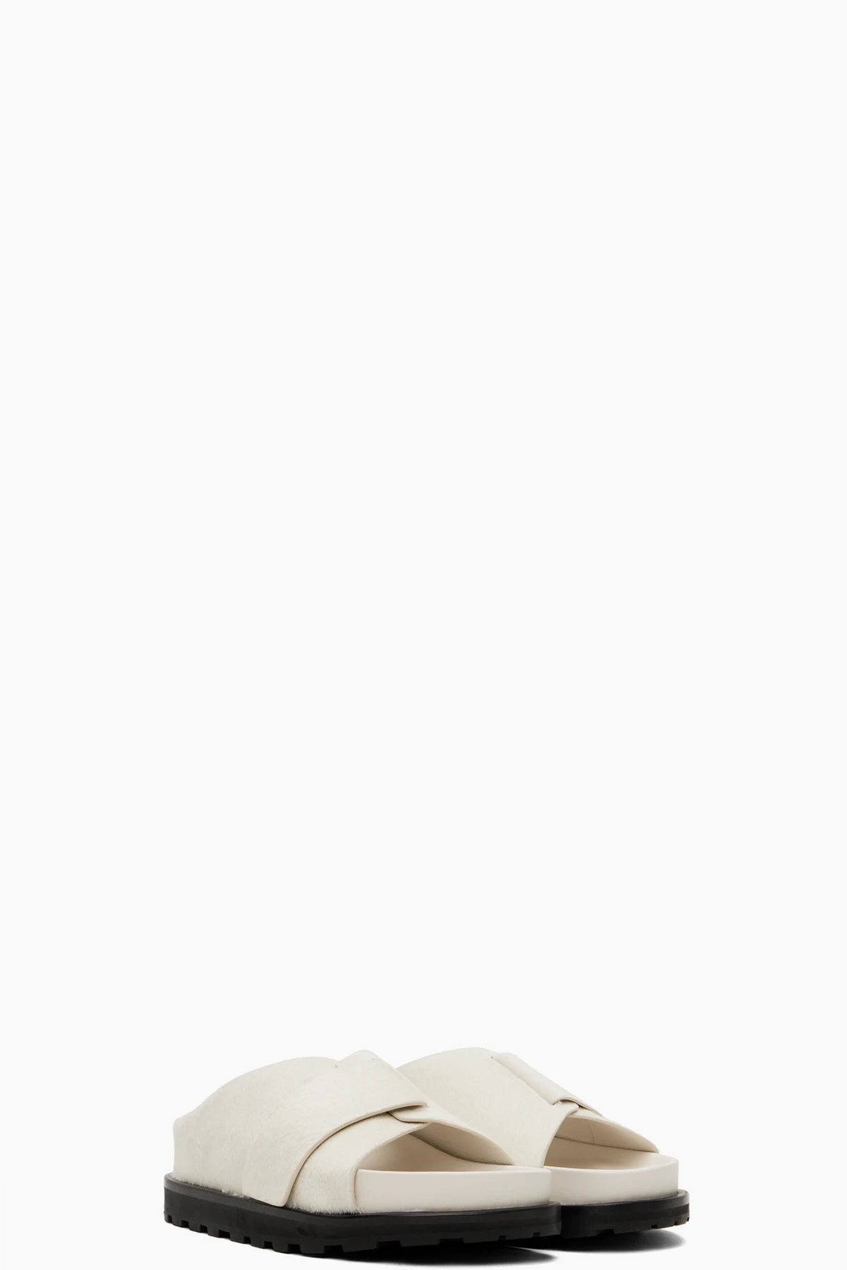 Calf-hair slides in white.