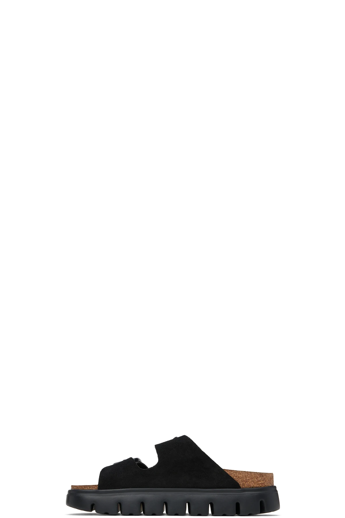 Suede slip-on sandals in black.
