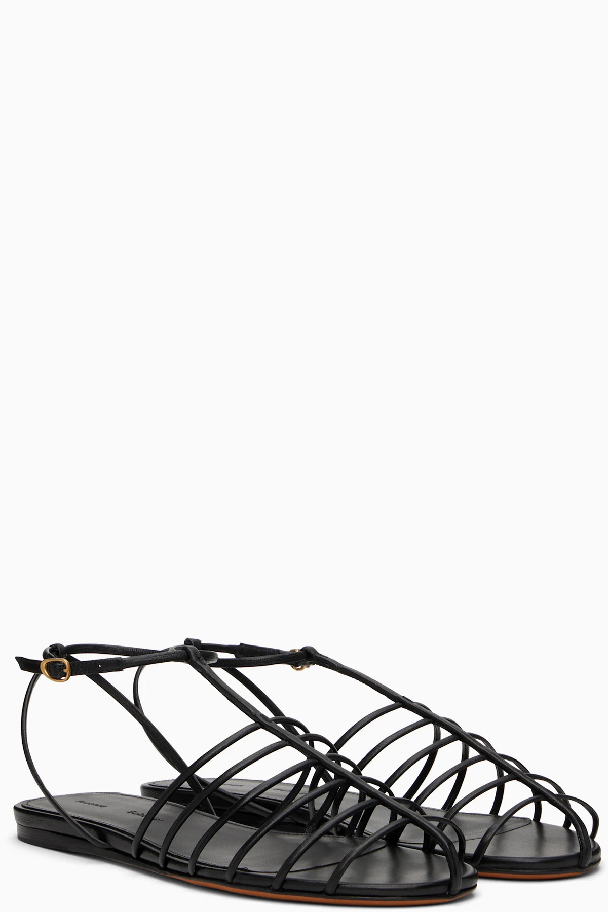 Black Tee Cage Flat Sandals