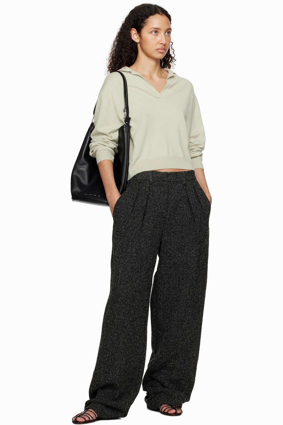 Grained lambskin flat sandals in black.