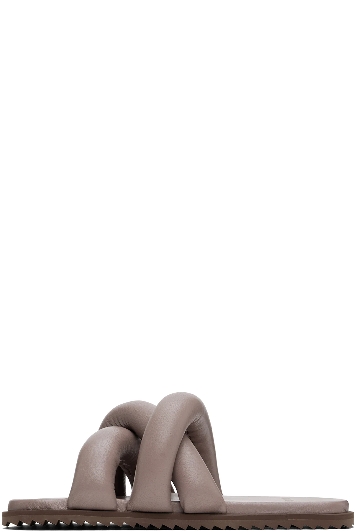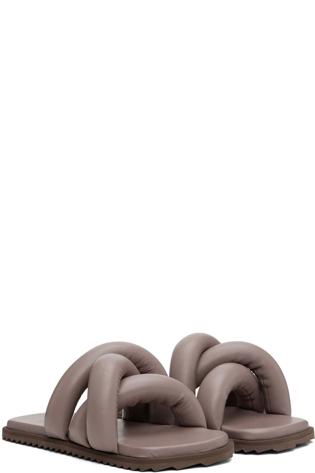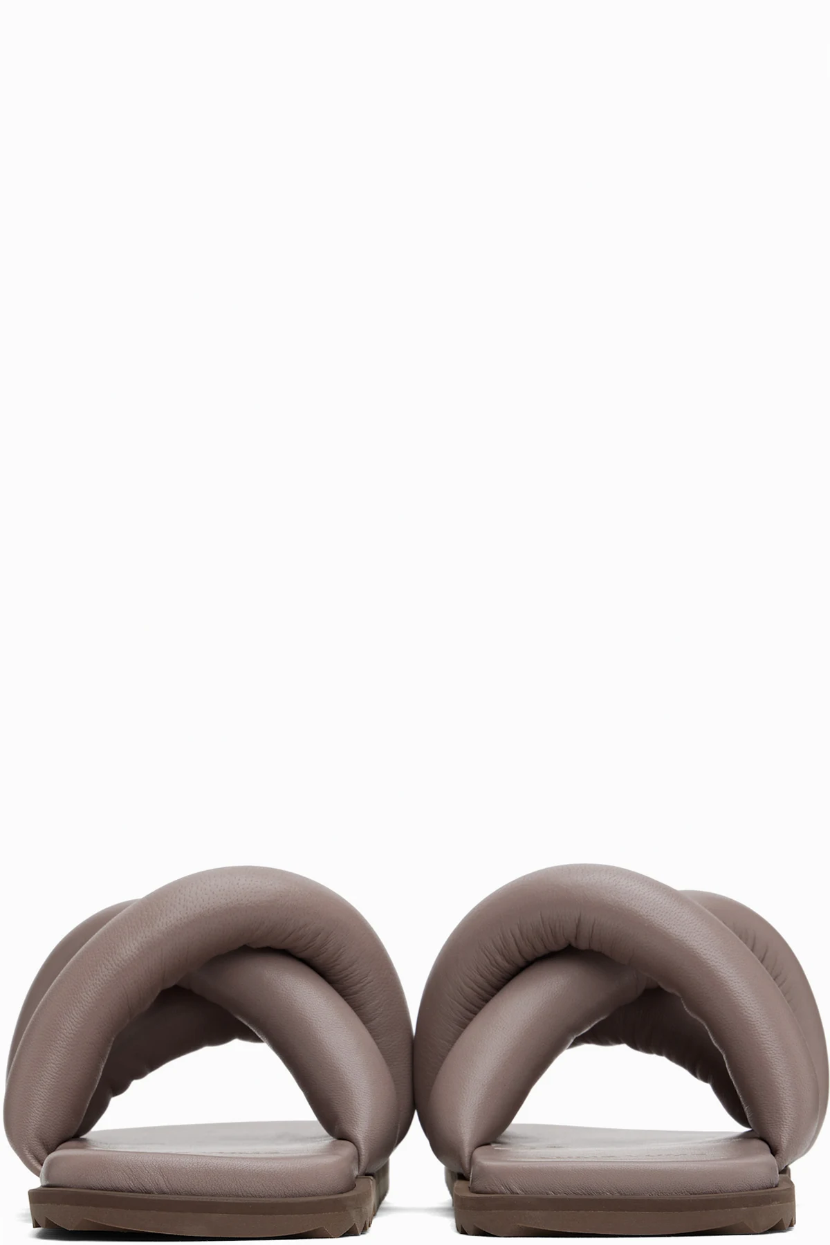 Padded buffed leather slip-on sandals in taupe.