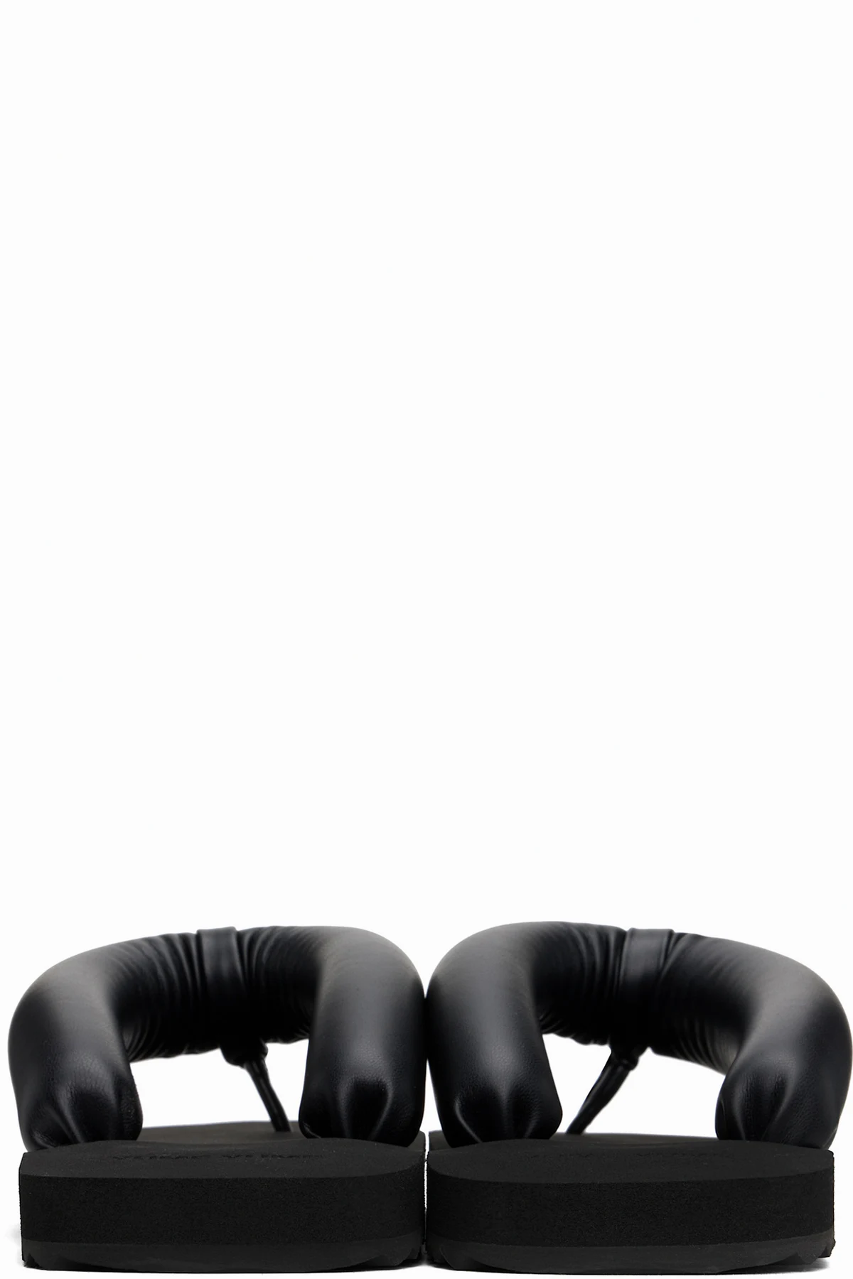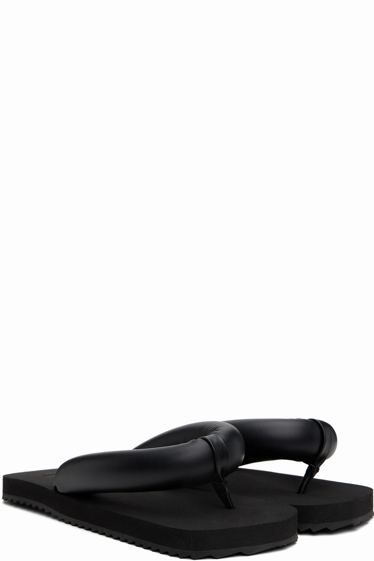 Padded buffed faux-leather flip-flops in black.