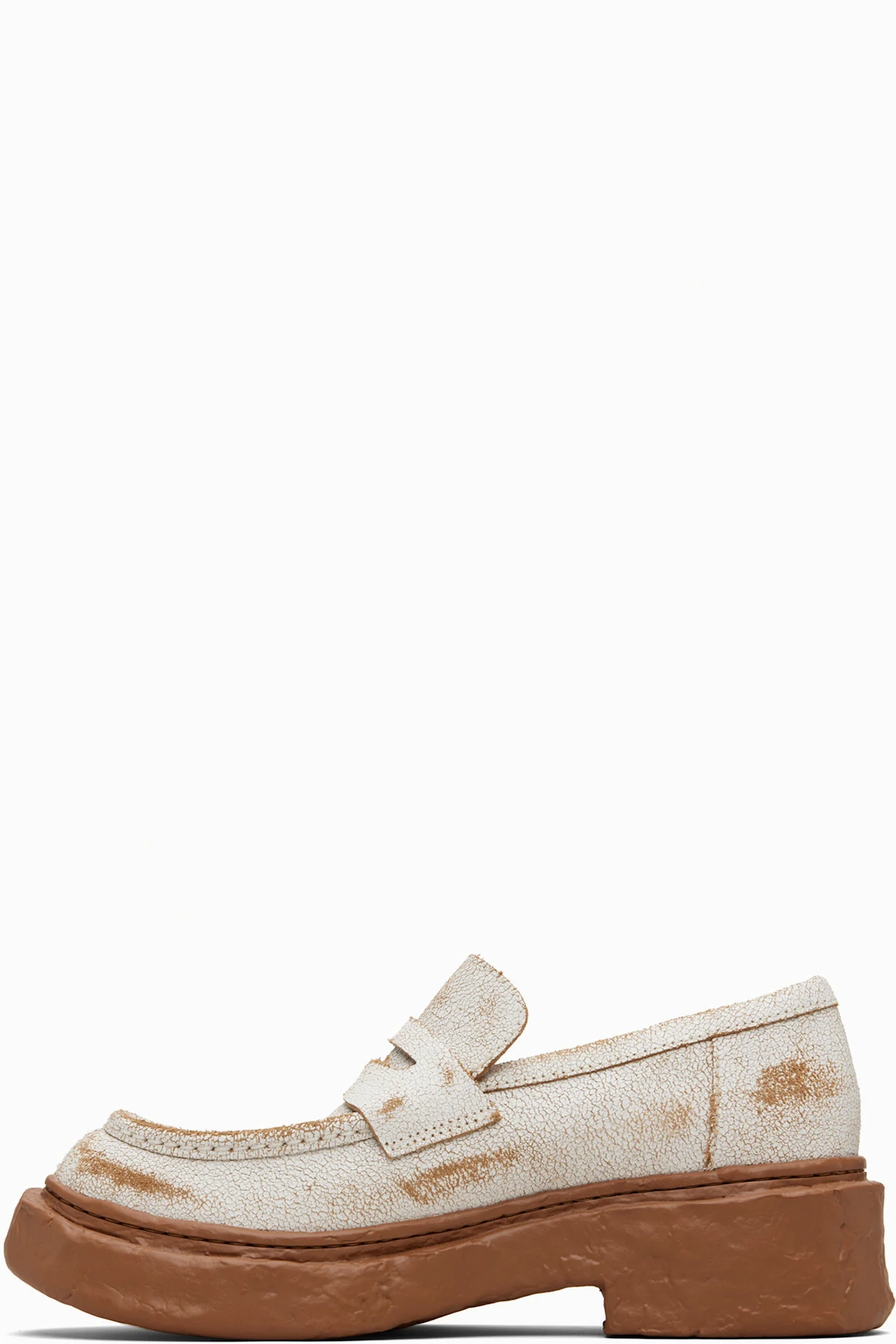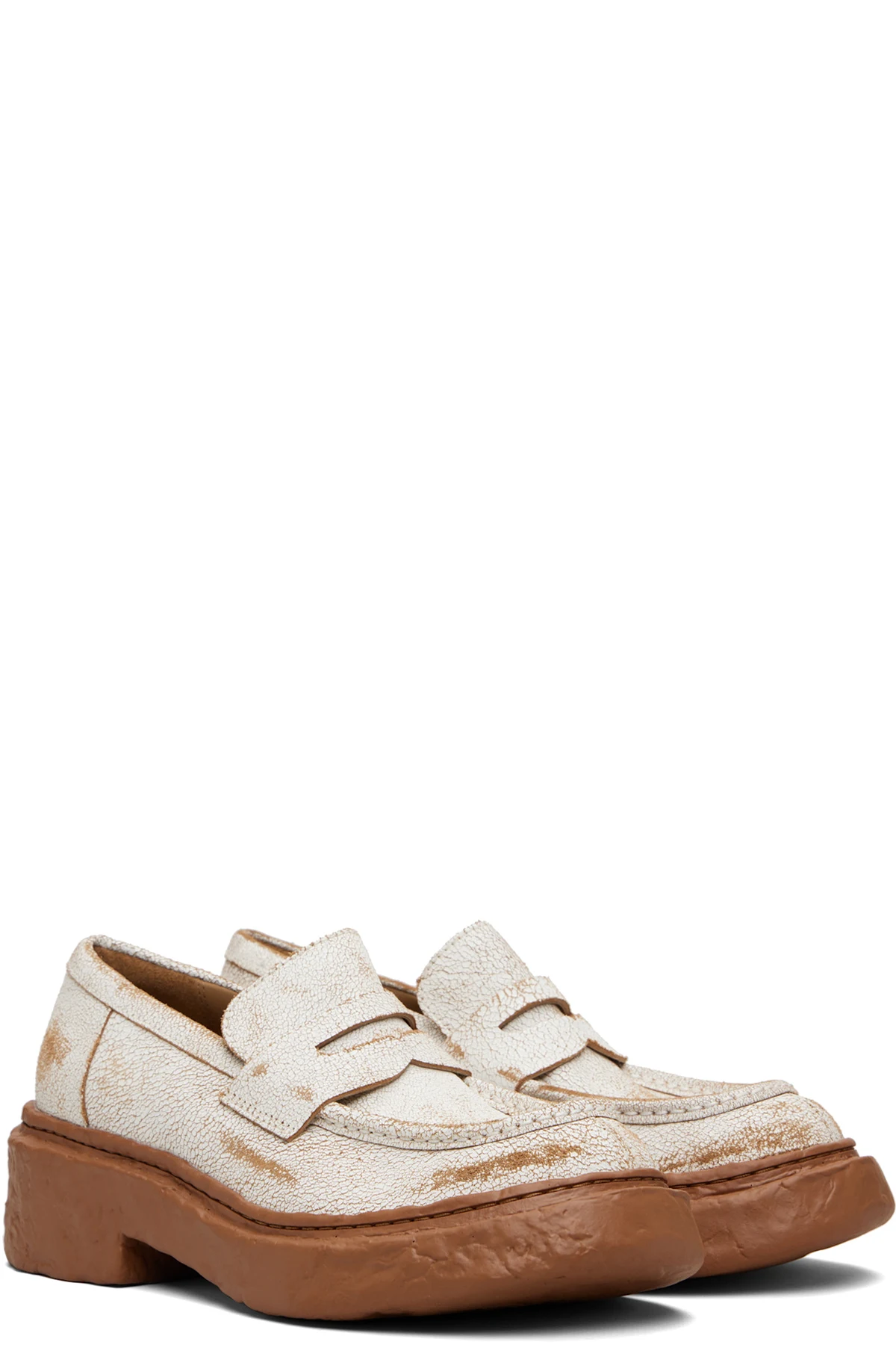Cracked leather loafers.
