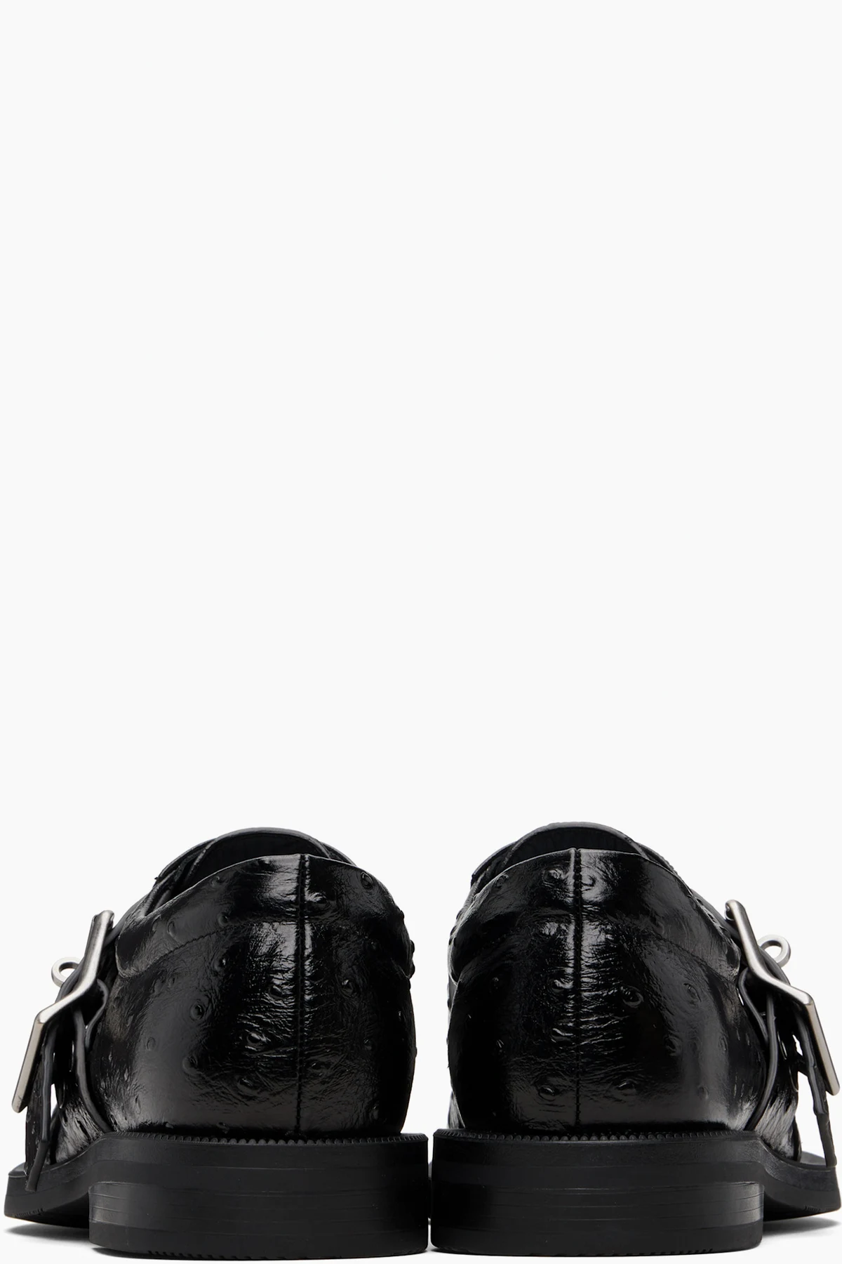 Ostrich-embossed leather loafers.