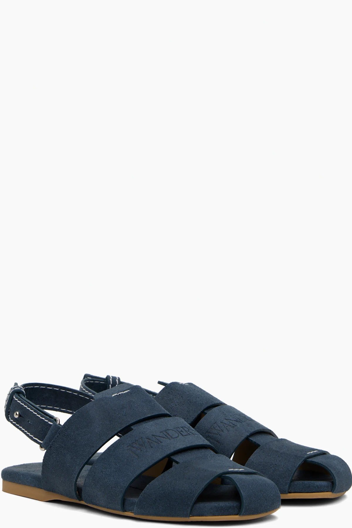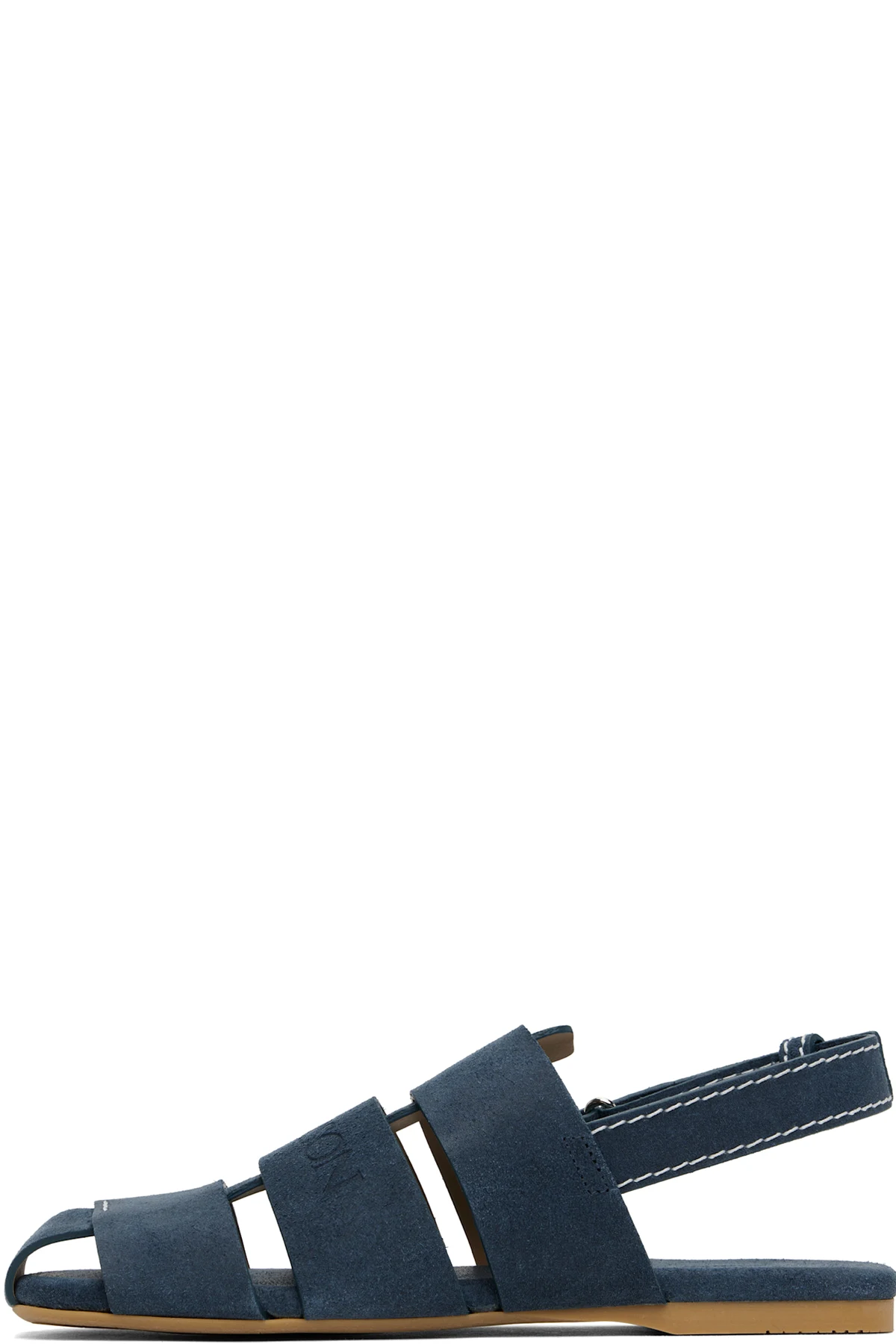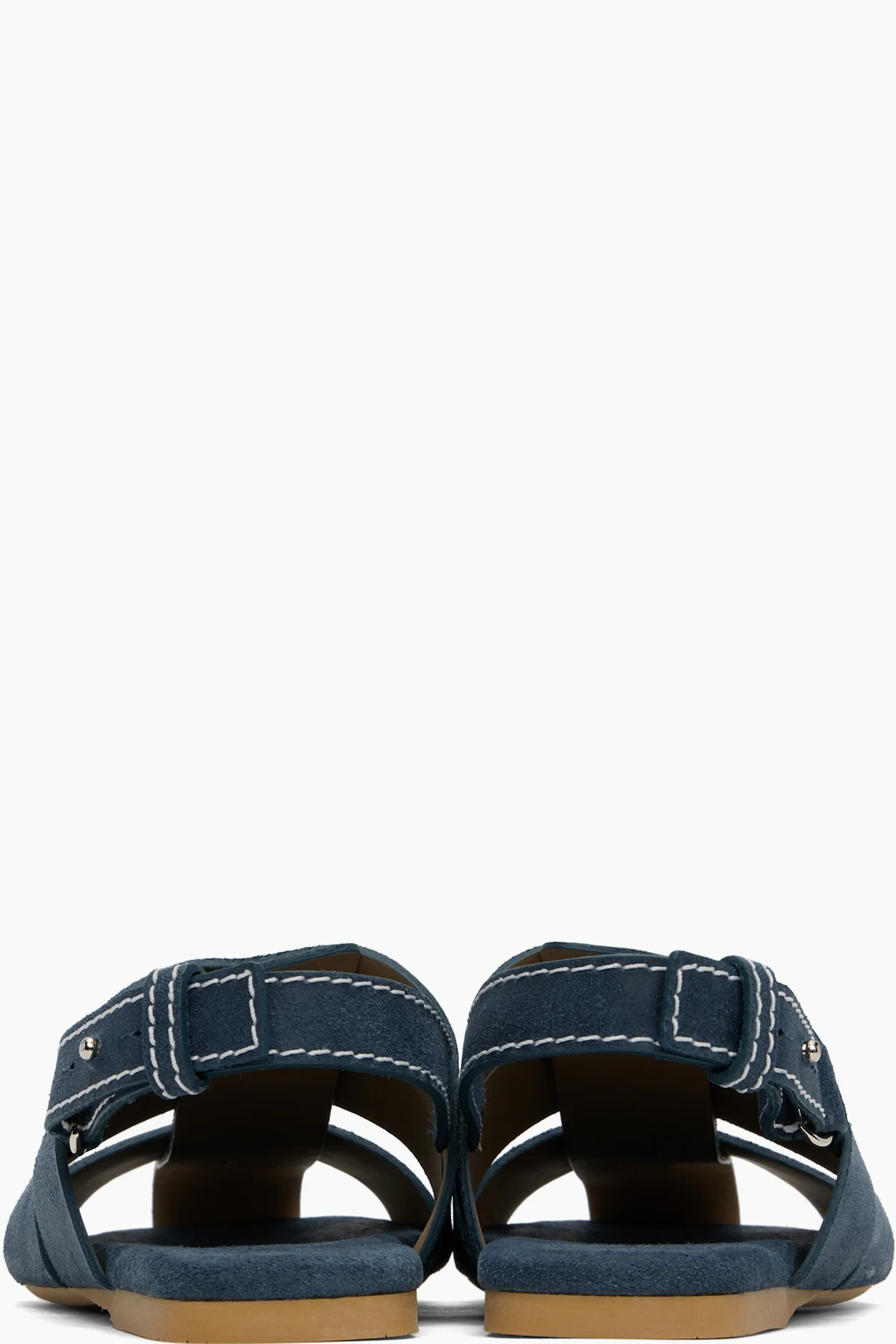 Calfskin suede flat sandals in blue.