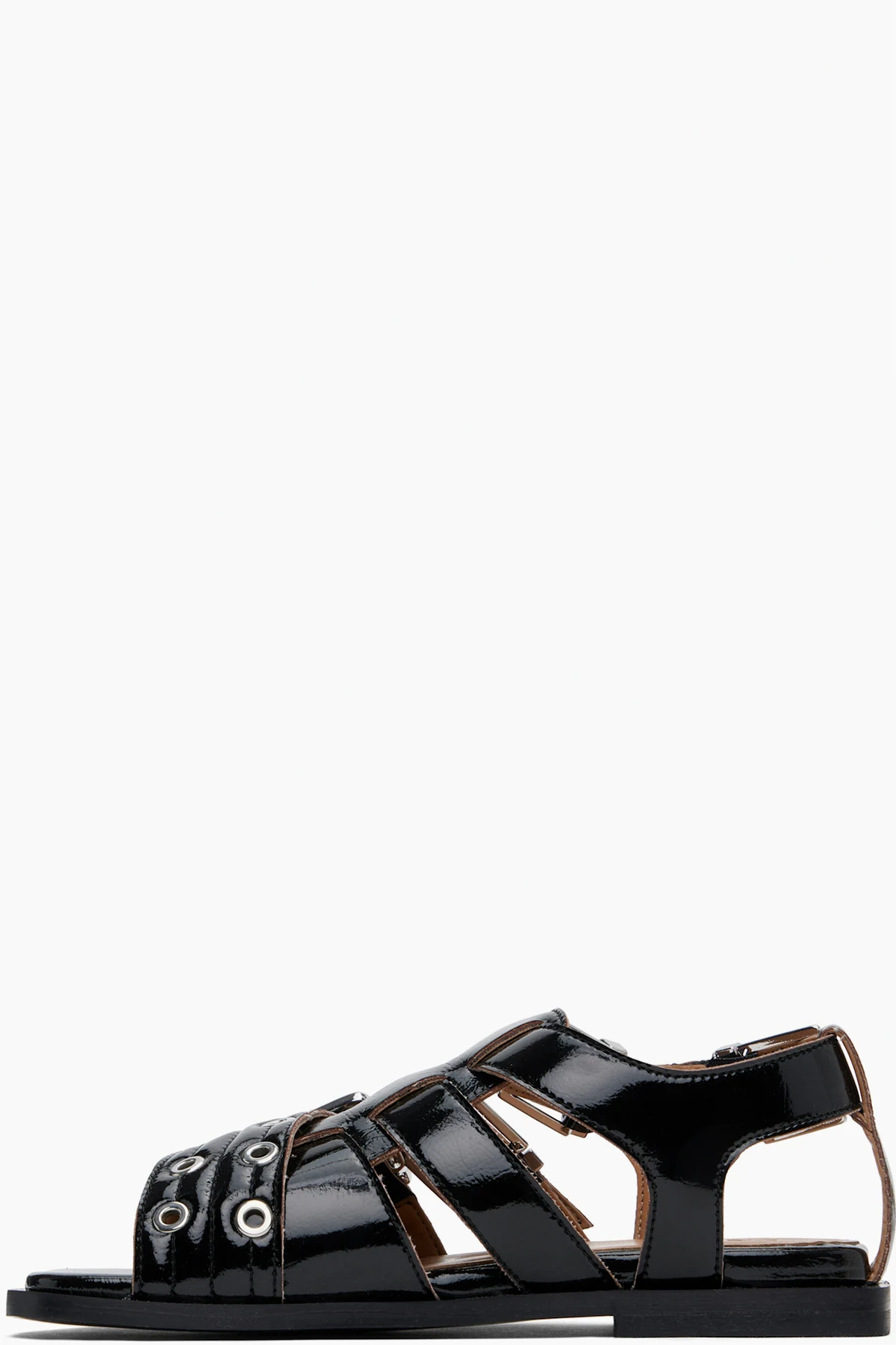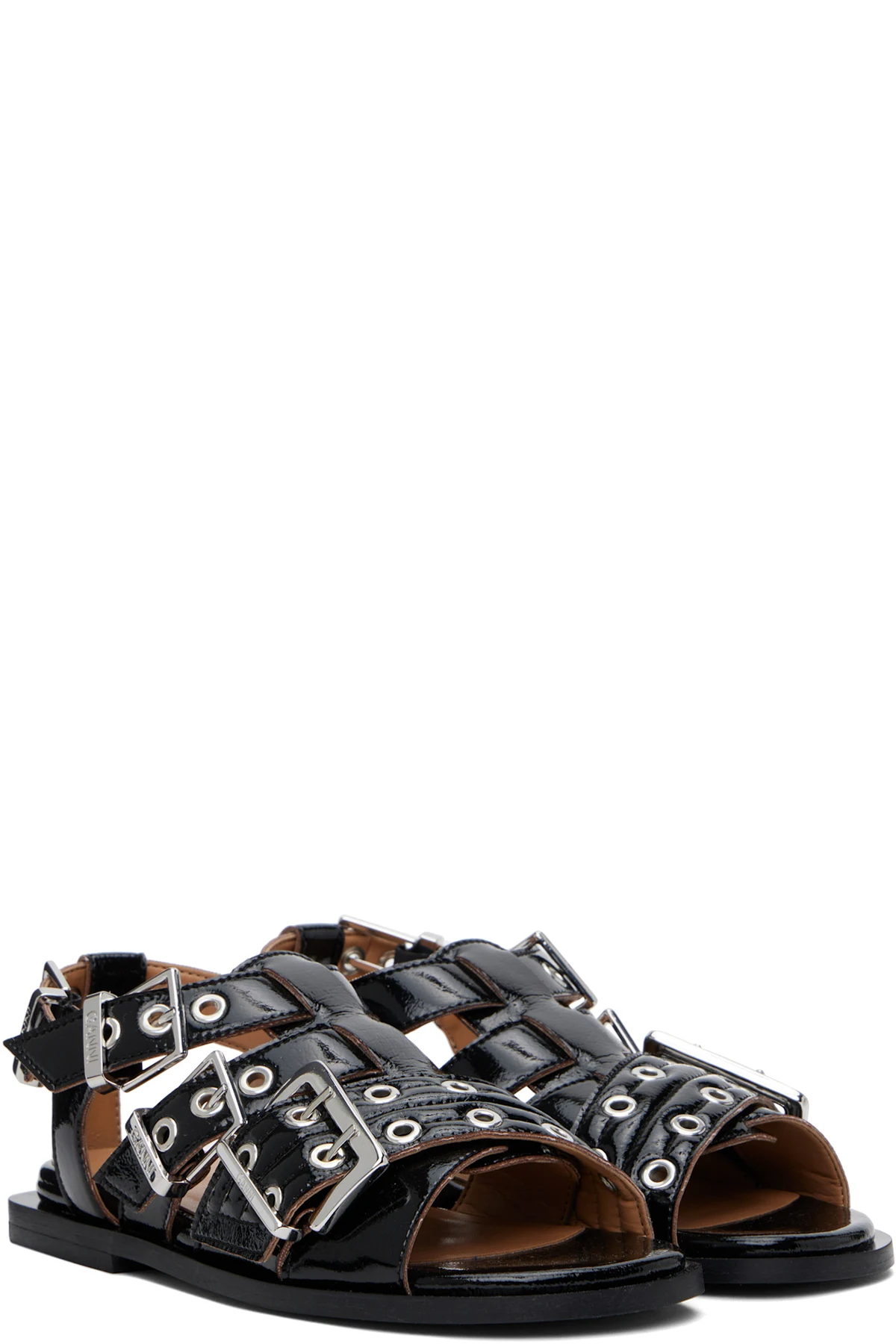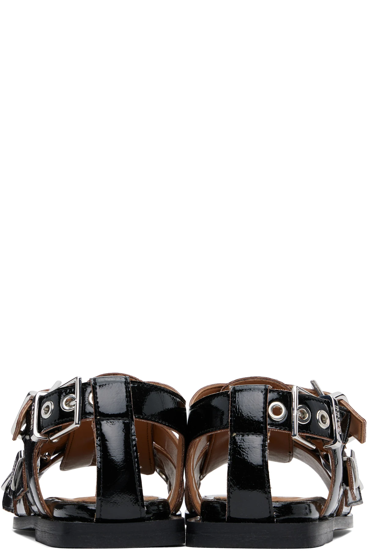 Black Feminine Buckle Strap Naplack Flat Sandals