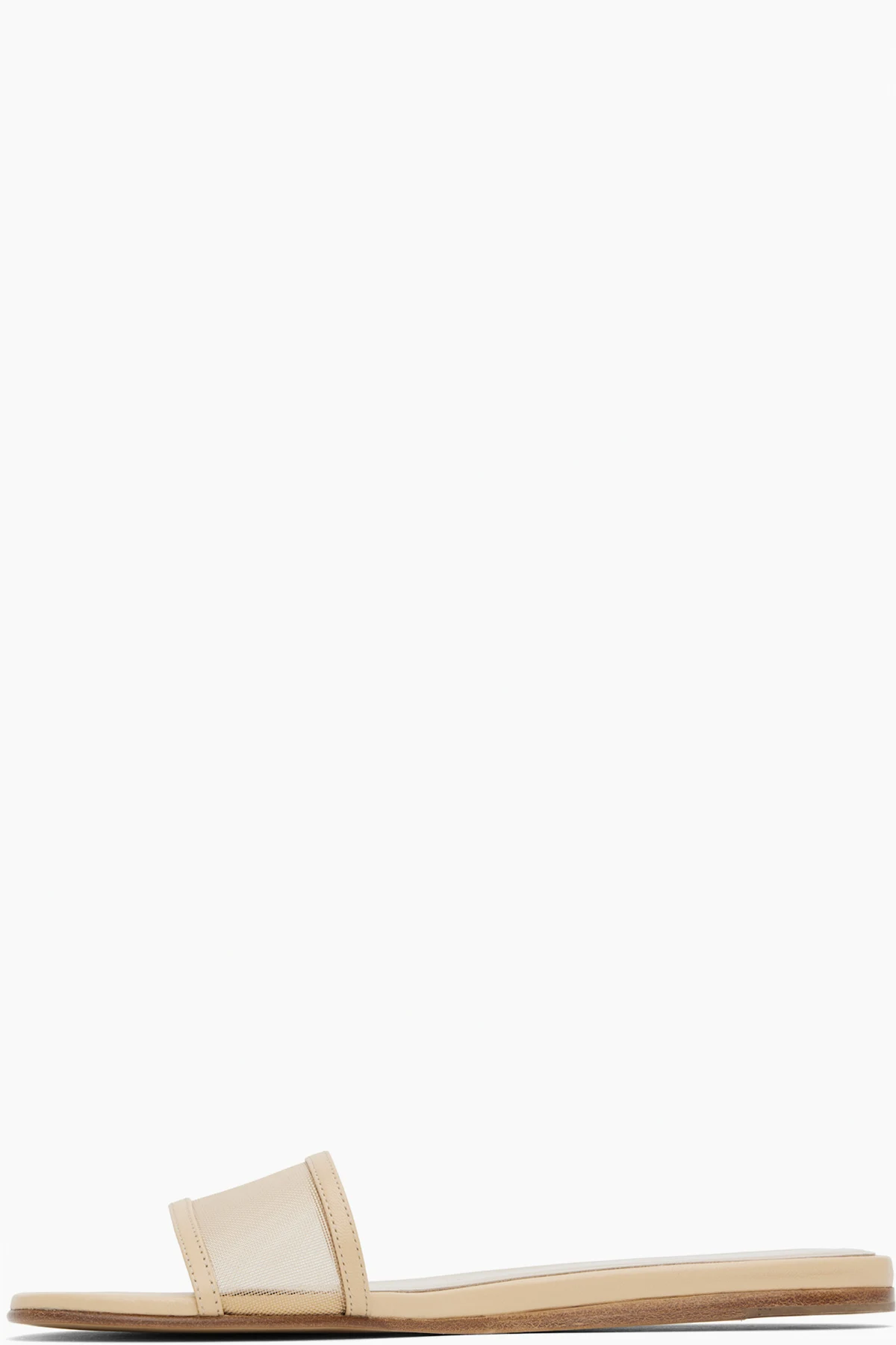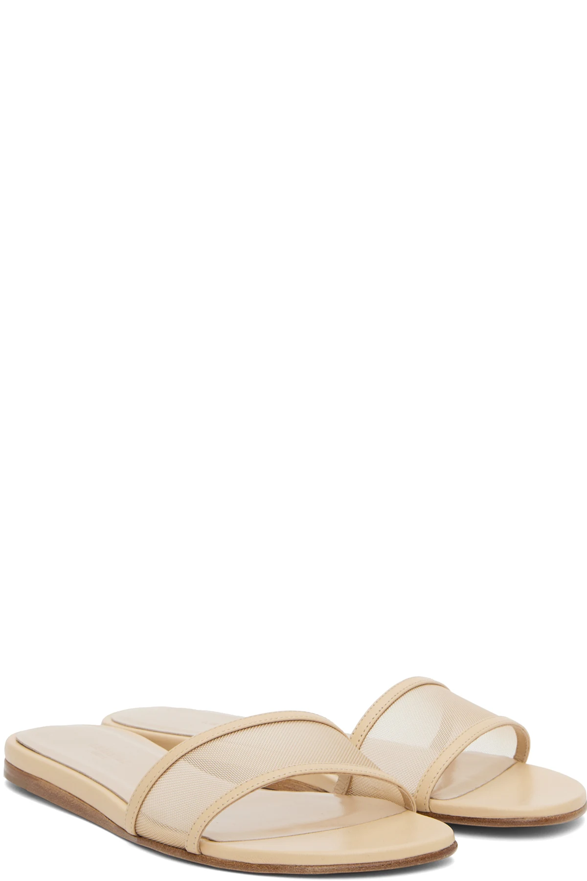 Handcrafted mesh and buffed leather sandals in beige.
