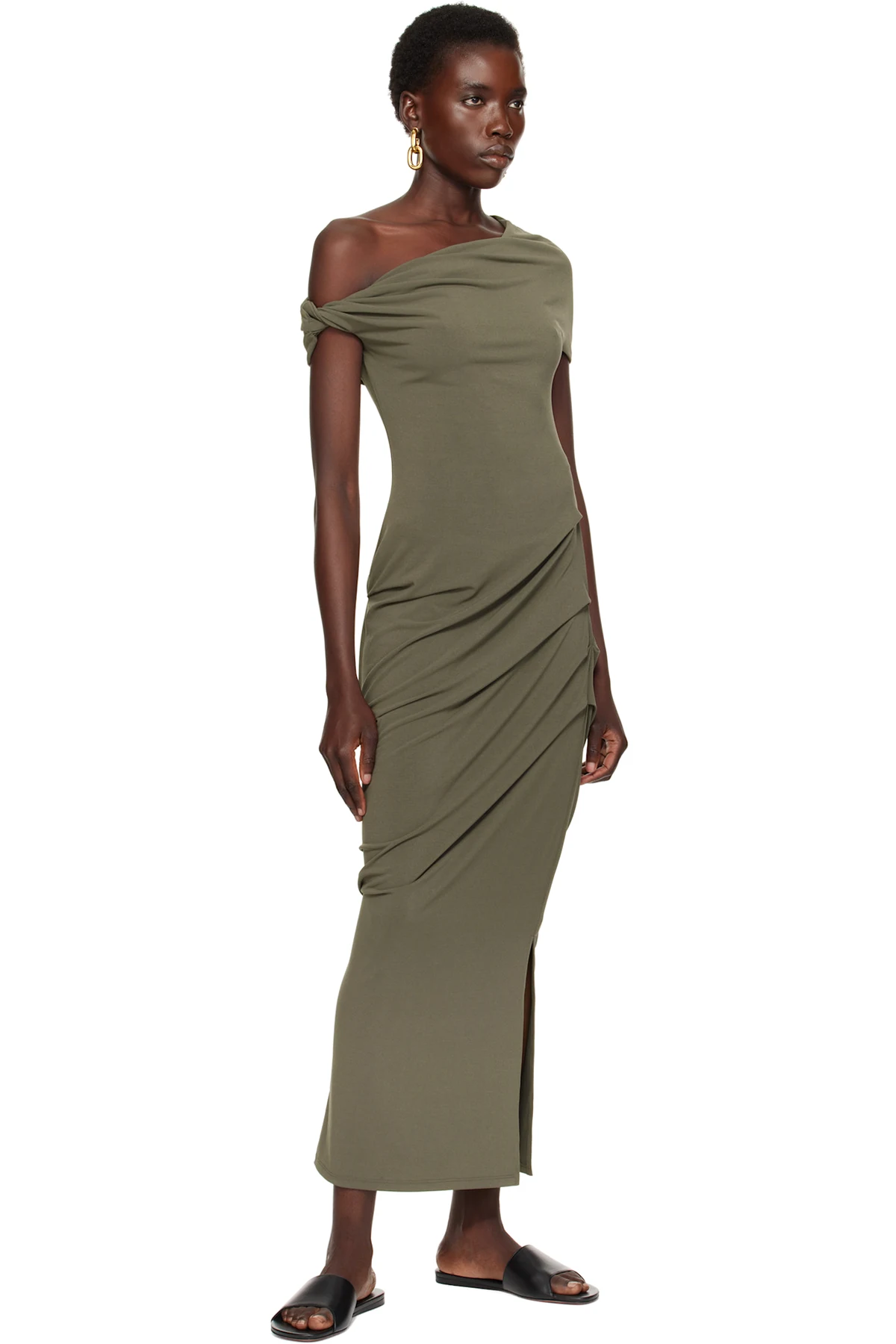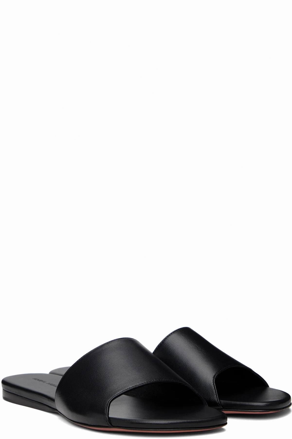 Grained nappa lambskin slip-on sandals in black.