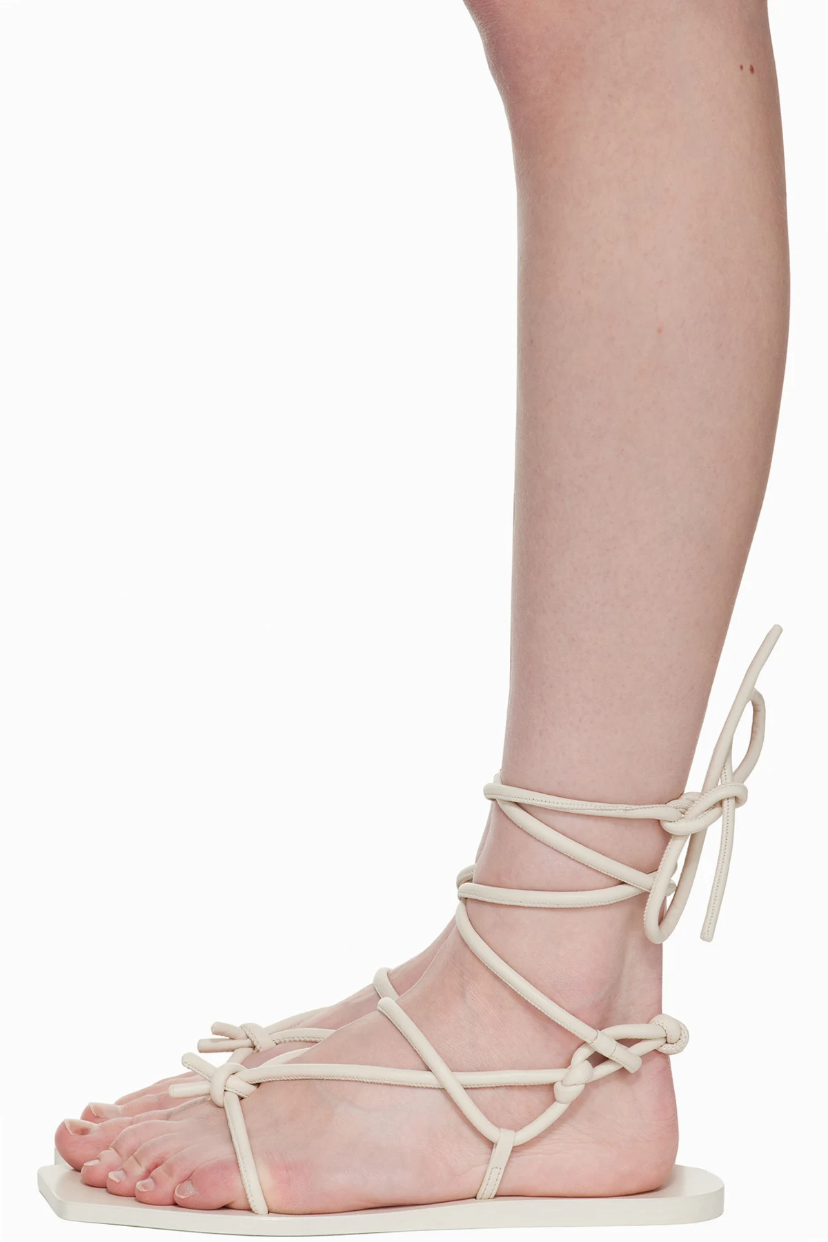 · Wraparound self-tie ankle strap