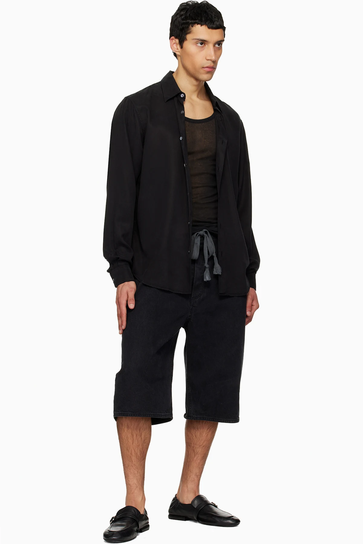 Creased leather loafers.