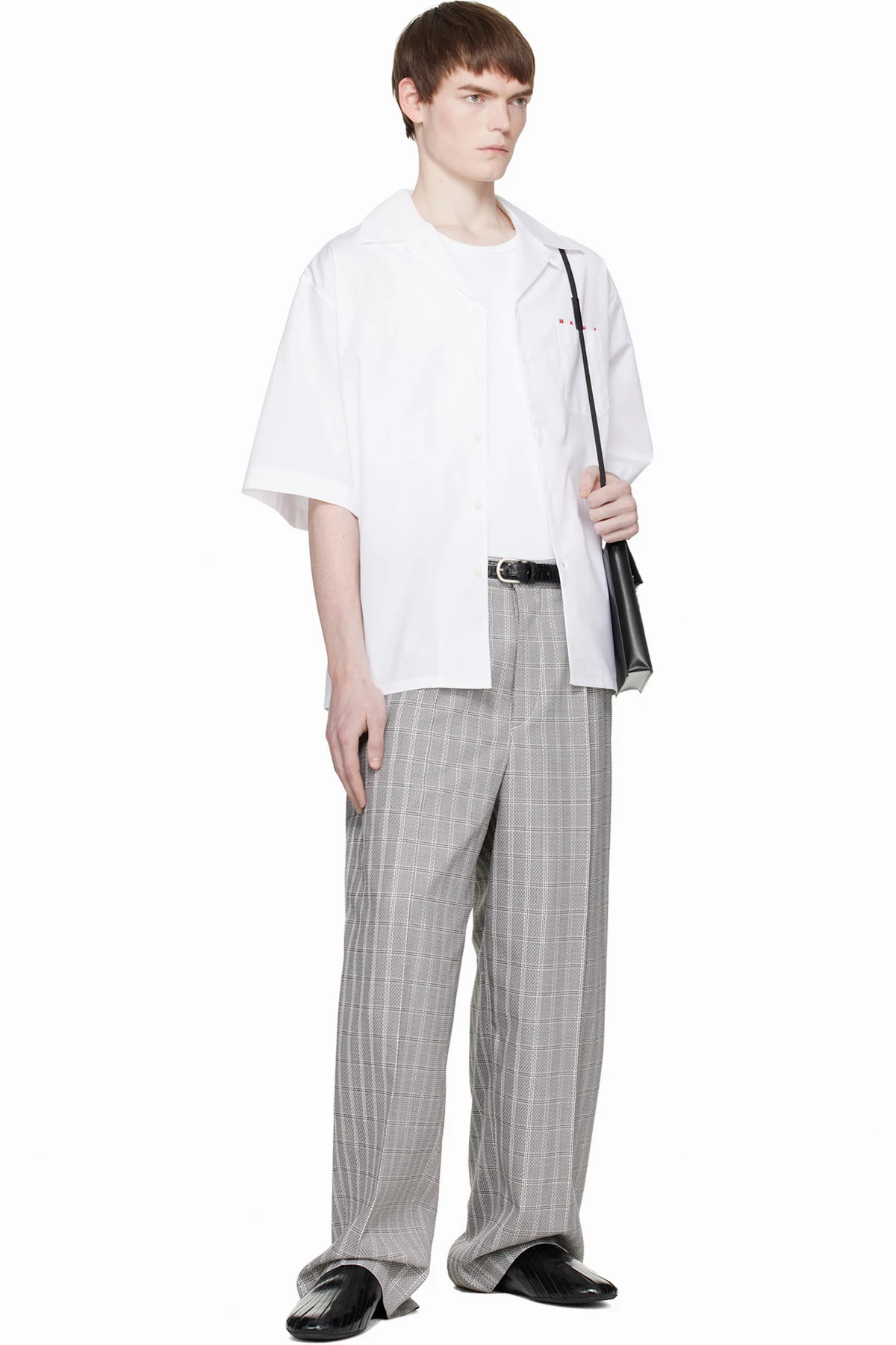 · Overlapping leather panels throughout