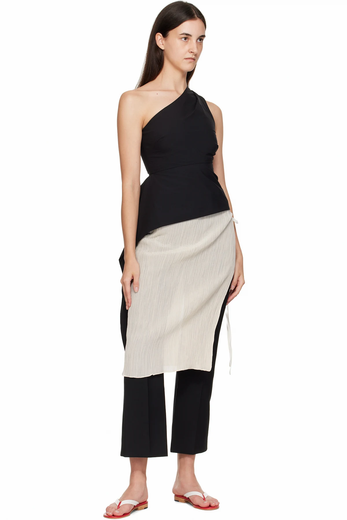 White & Red Leather Flip-Flops