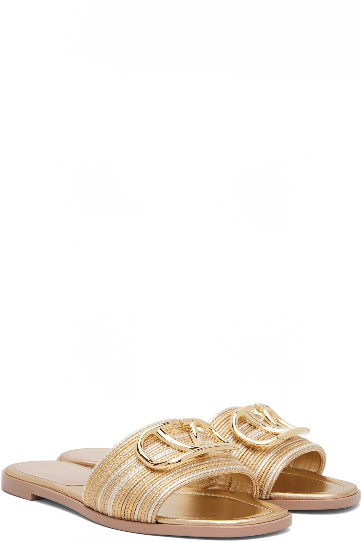 Gold VLogo Signature Metallic Leather Slide Sandals