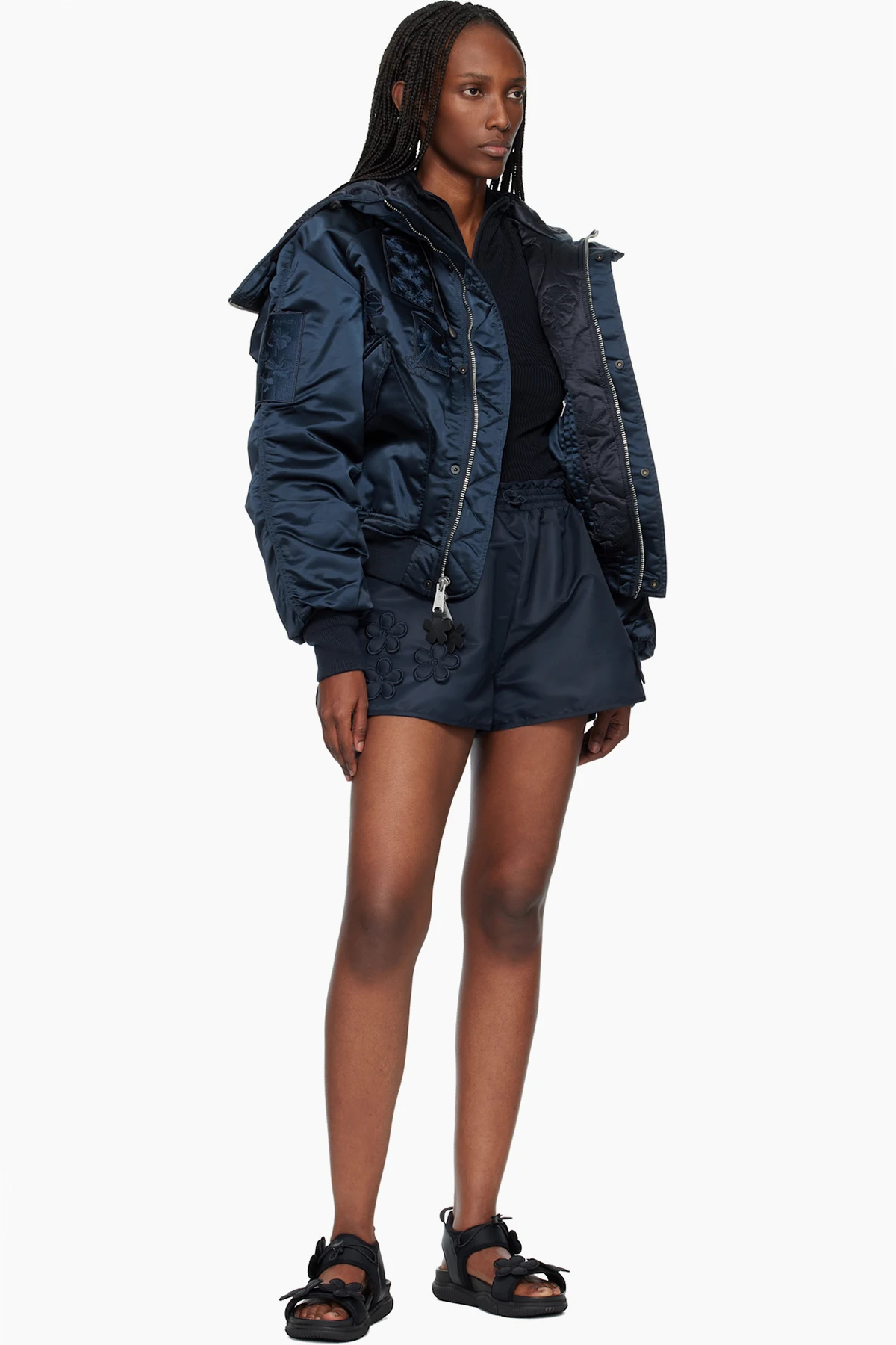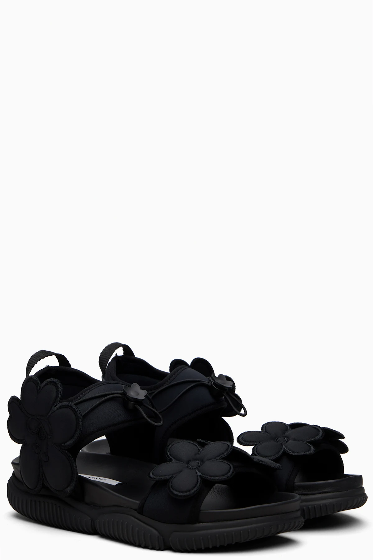· Strap with floral appliqués at vamp