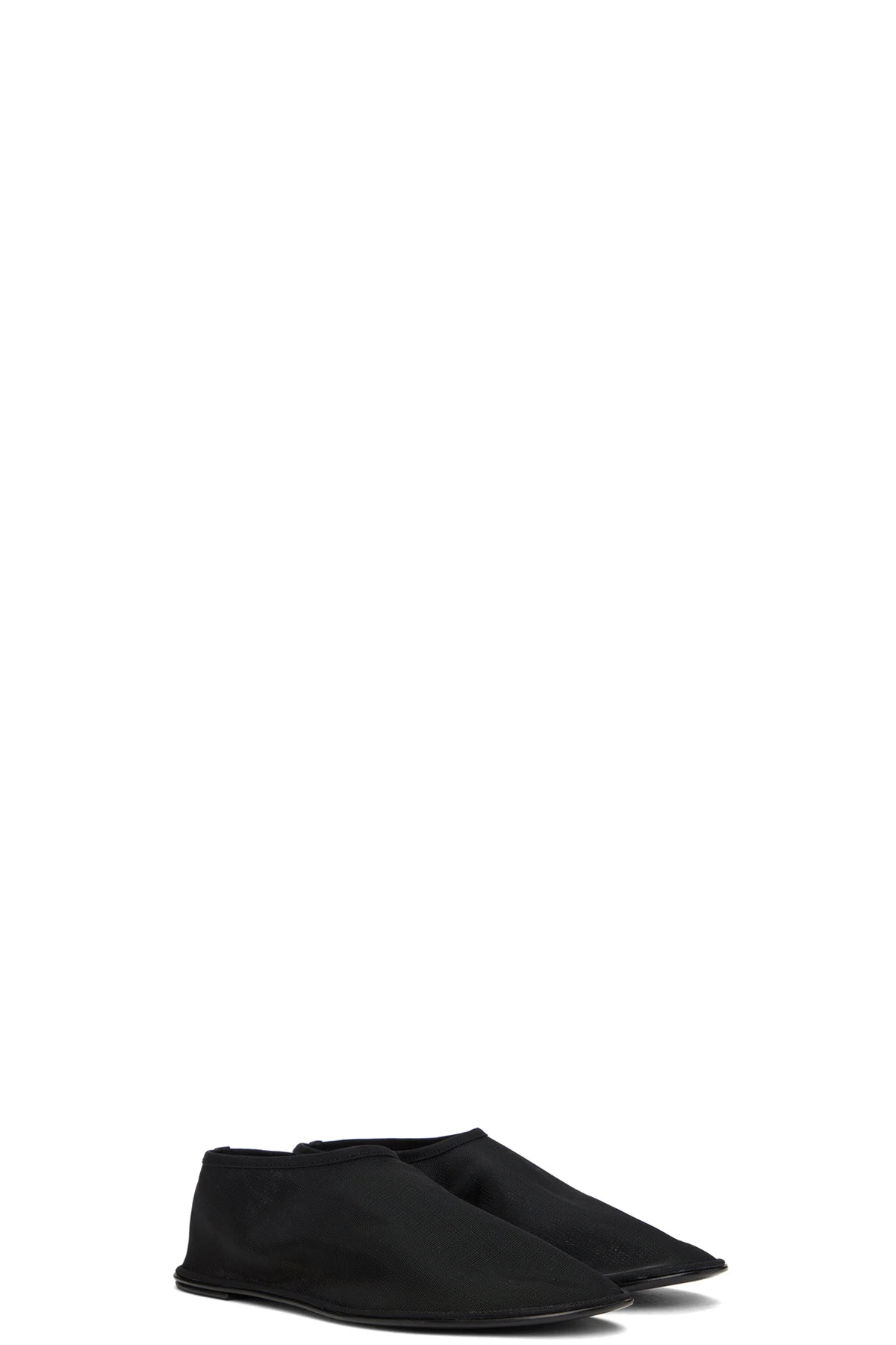 Semi-sheer nylon mesh loafers in black.